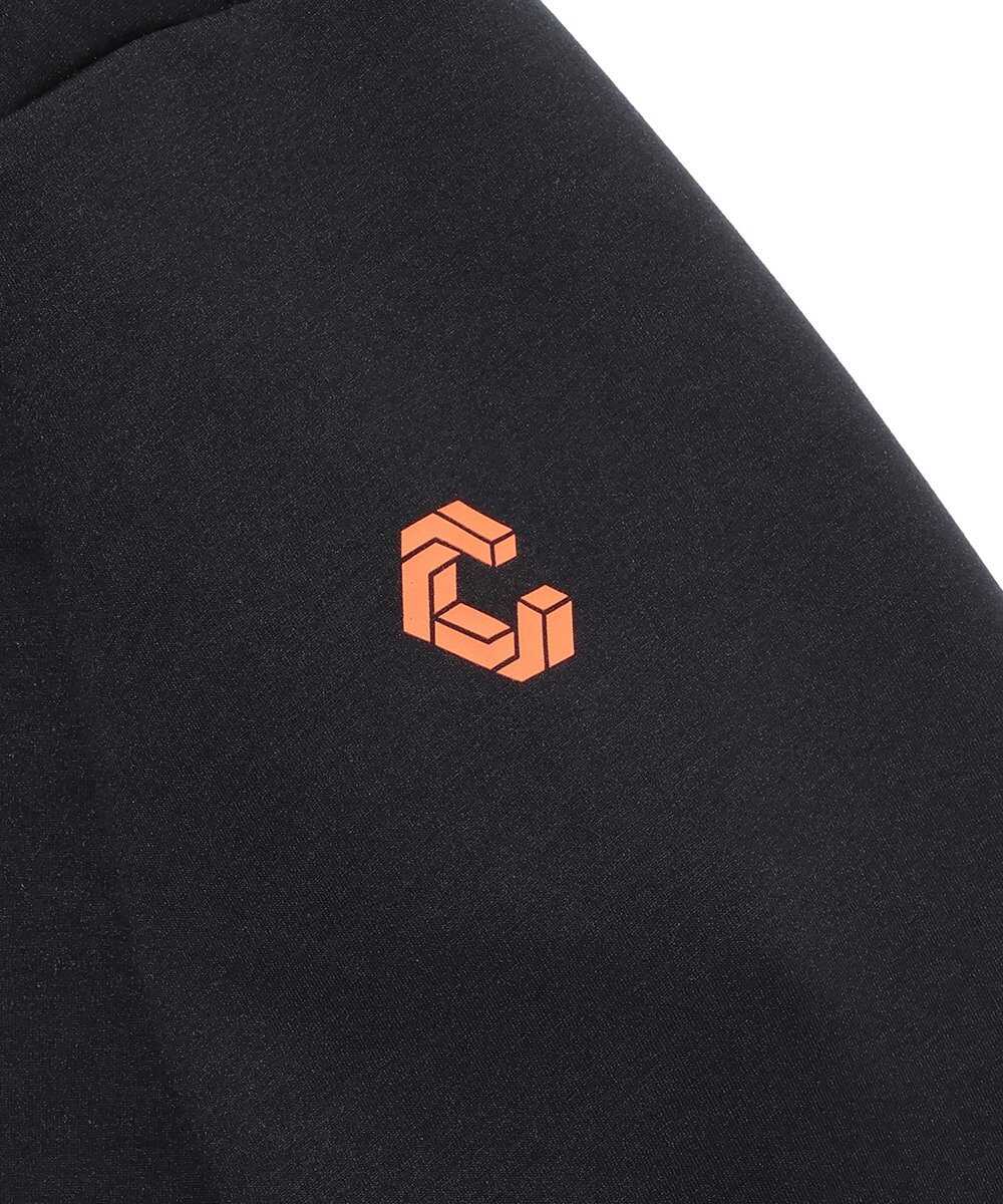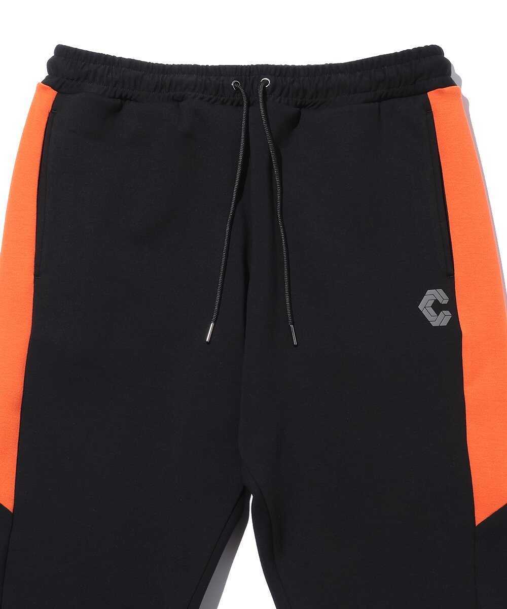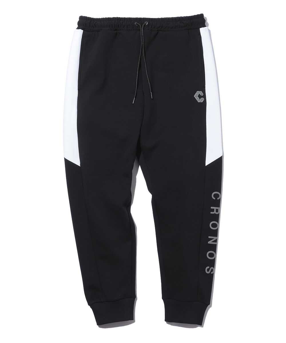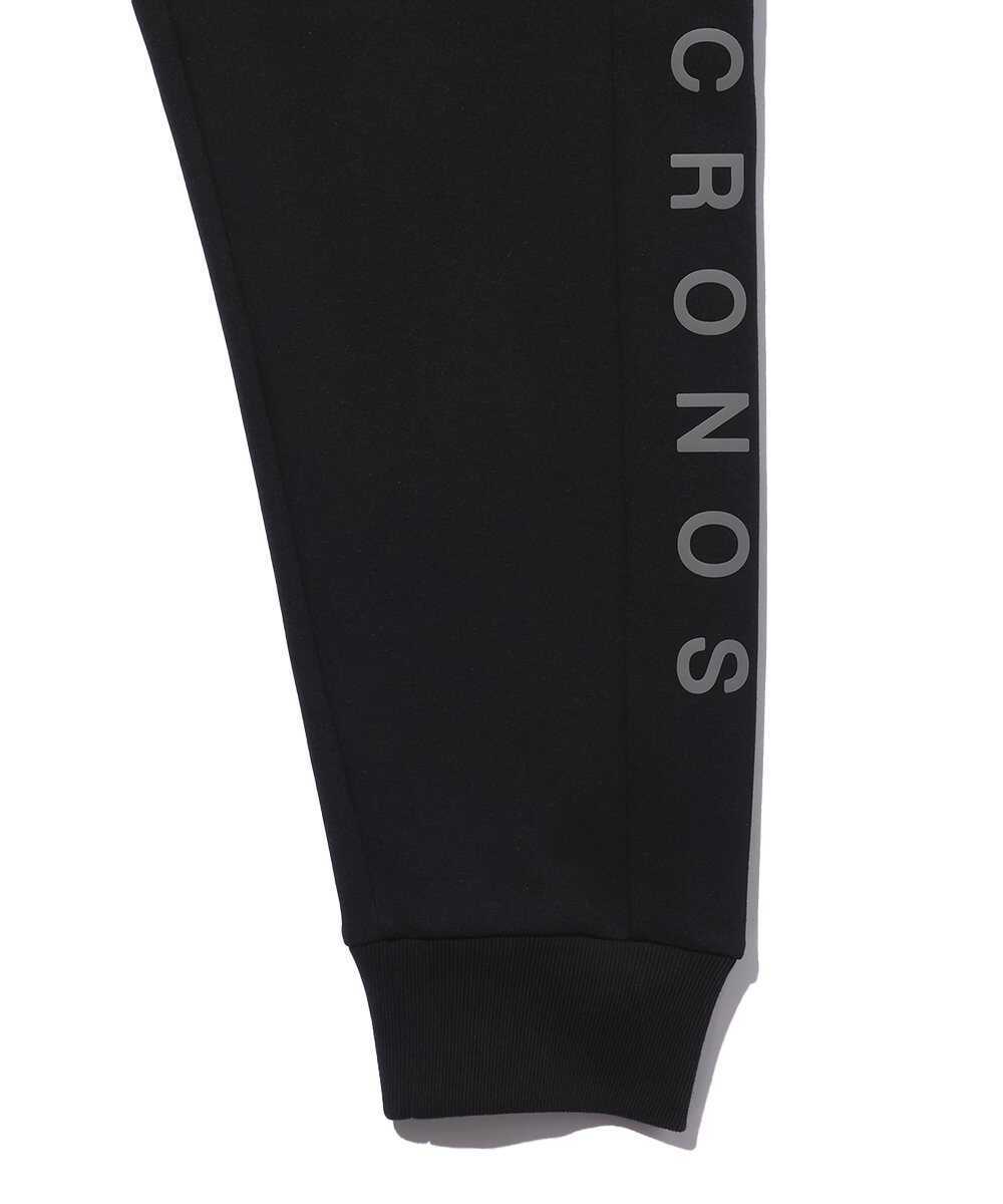 先ほどのパーカと同素材を用いて、セットアップで着用できるように作られたのがこのボトム。直線的な配色デザインで、左ポケット下と左脇裾にはリフレクター転写シートを配置し、夜間の視認性も確保。メッシュ生地の袋布や織りネームなど、細部まで〈クロノス〉のこだわりを反映した。
