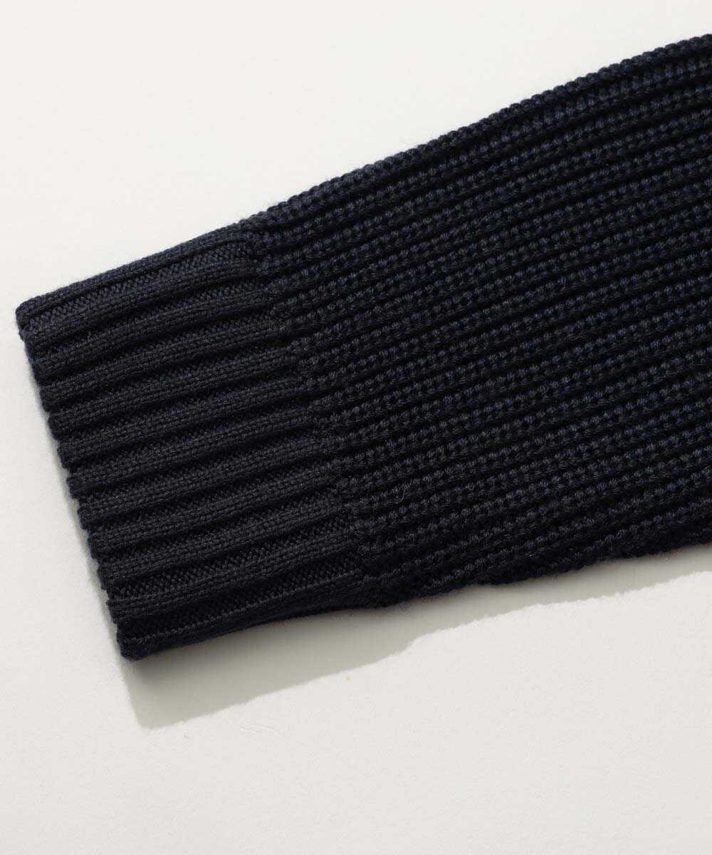 見て、この薄さ。しっかりと必要な部分の保温性は確保しつつ、すっきり着用できるように考えられたニットの切り替えが都会的な雰囲気を演出してくれる!