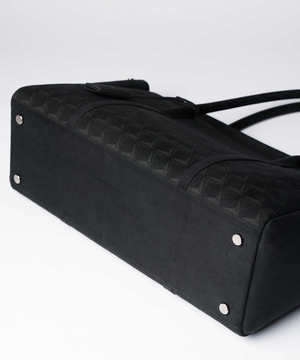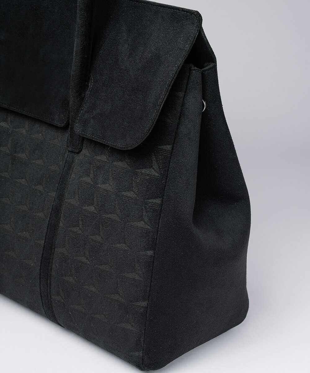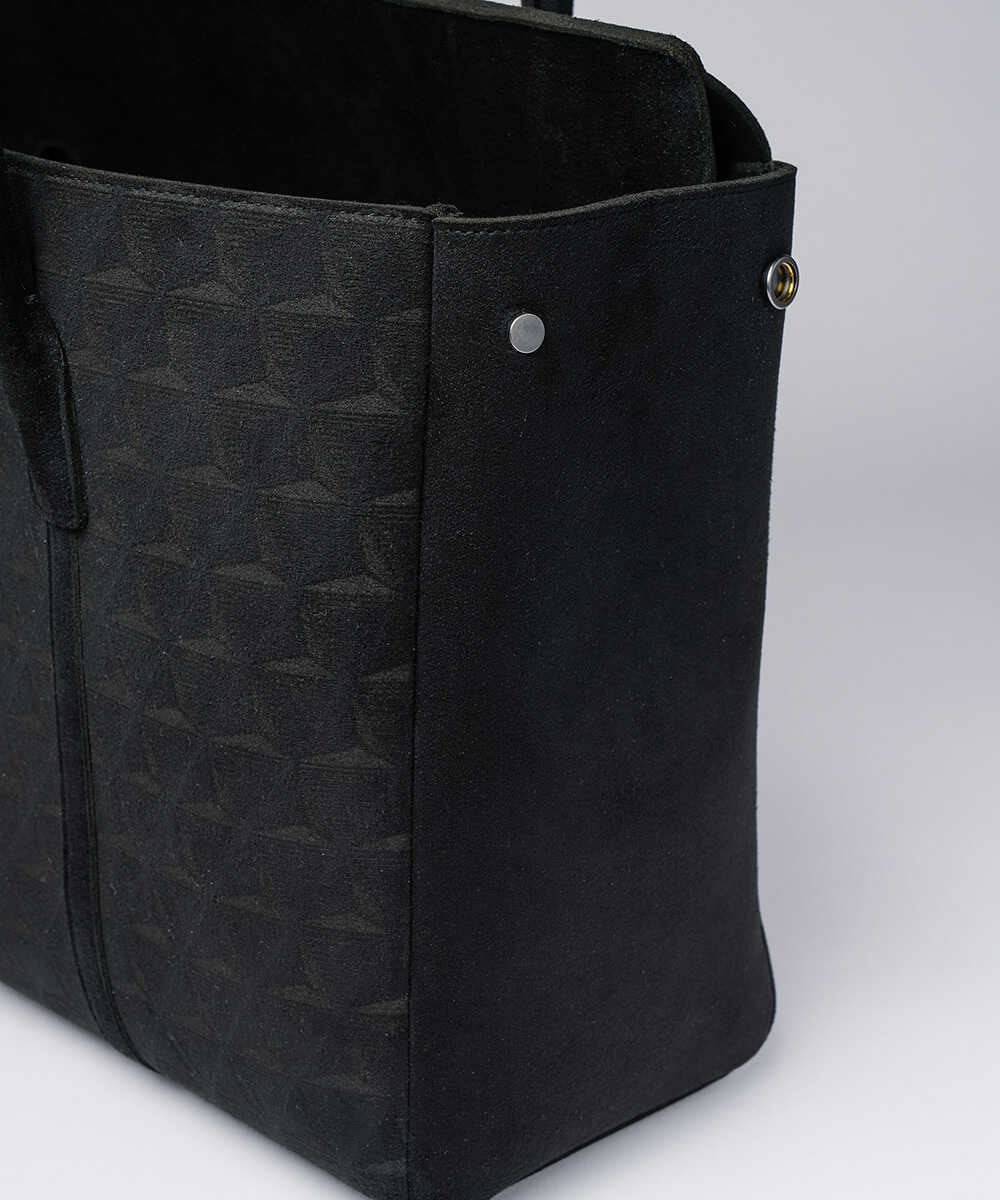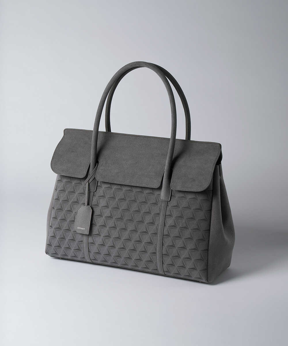 〈エスティバン〉から登場したフラップ付きのトートバッグ。重厚感ある佇まいは、ウルトラスエードを2枚貼り合わせることで実現しており、ブランドのアイデンティティでもある驚きの軽さが一番のメリットだ。また、底鋲があり、チューブ入りの取っ手とハリのある生地のおかげで、しっかりと自立。そのため、ビジネスシーンでも役立つこと請け合い。