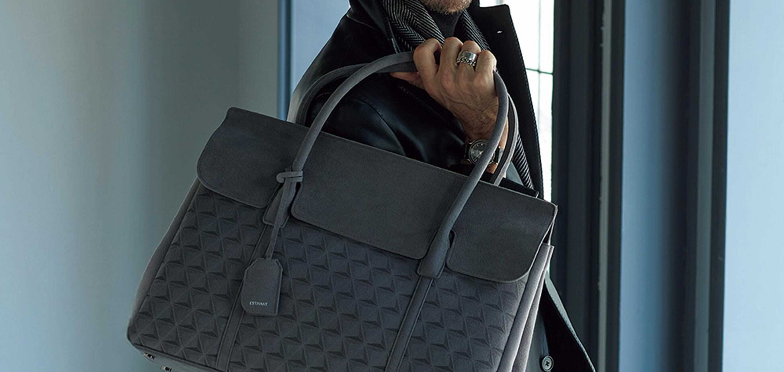 軽くて水にも強いなど、イージーケア性が魅力のウルトラスエードをバッグに採用している〈エスティバン〉。その品質のよさと高級感ある手触りでありながらコストパフォーマンスに優れた点で人気を博している。その中で、特に注目したいのが、これまで以上にクラス感ある見た目のフラップ付きトート。カジュアルシーンの格上げからビジカジ合わせなど幅広く使えそうなので要チェックだ!