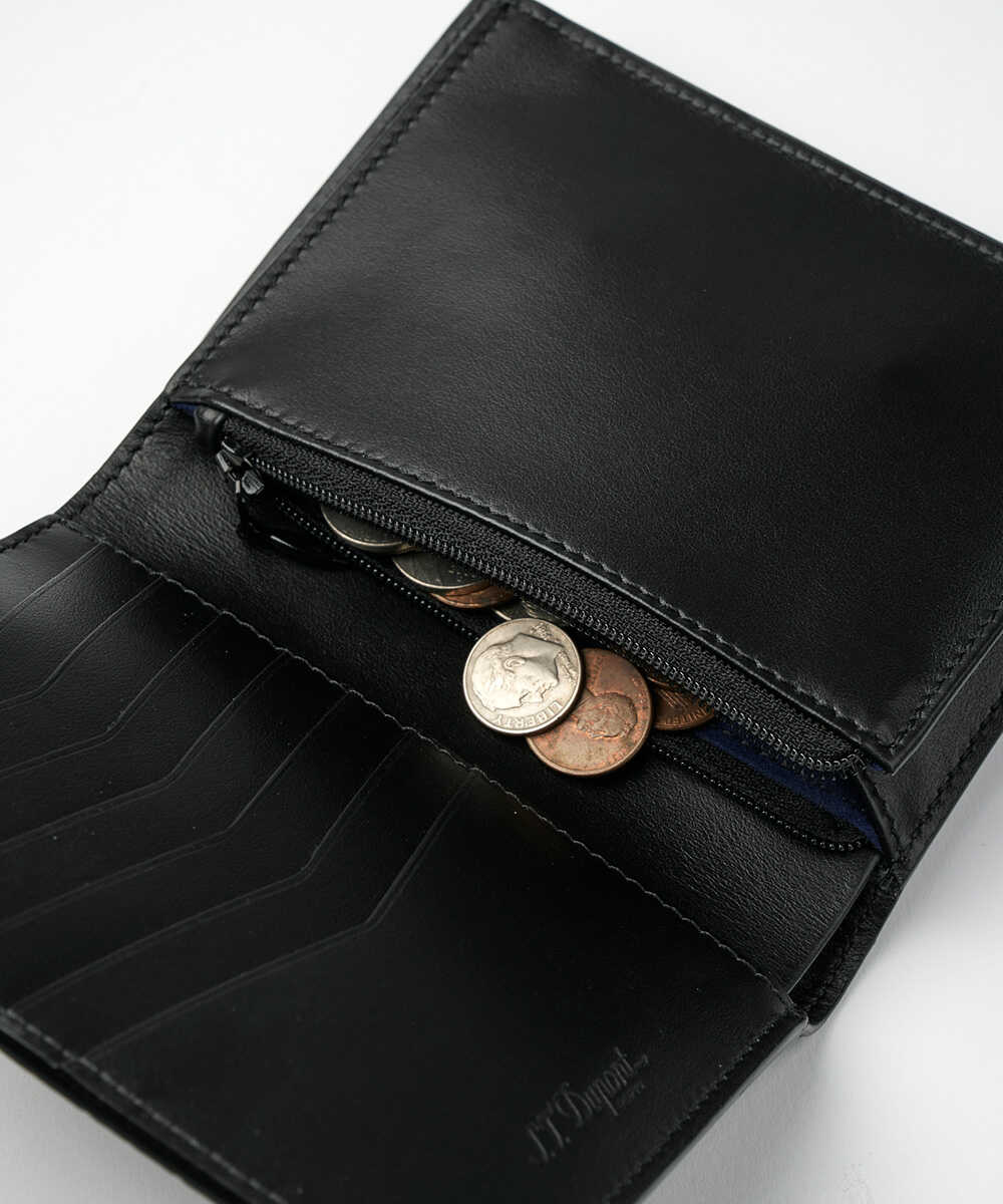 新時代の財布はどうしても小さいので、最低限のお札は折らないと入らないものが多い。とはいえ、風水的に折りたくないという人いるでしょ? そんな人はこれがいい。2つ折りで、王道の長財布よりは小さいタイプ。デニムパンツのヒップポケットに入るし、もちろんジャケットやコートの内ポケットにも入る。そんなサイズ感でありながら、ジッパー付き小銭ポケットもあり、カードスリットもある。なにより紙幣を折らずに入れられるのがメリット。