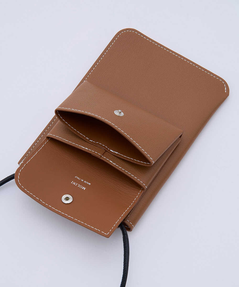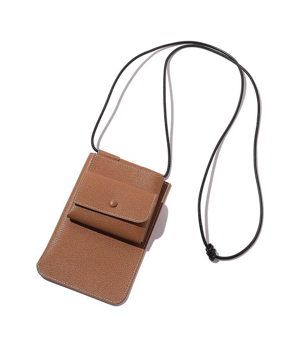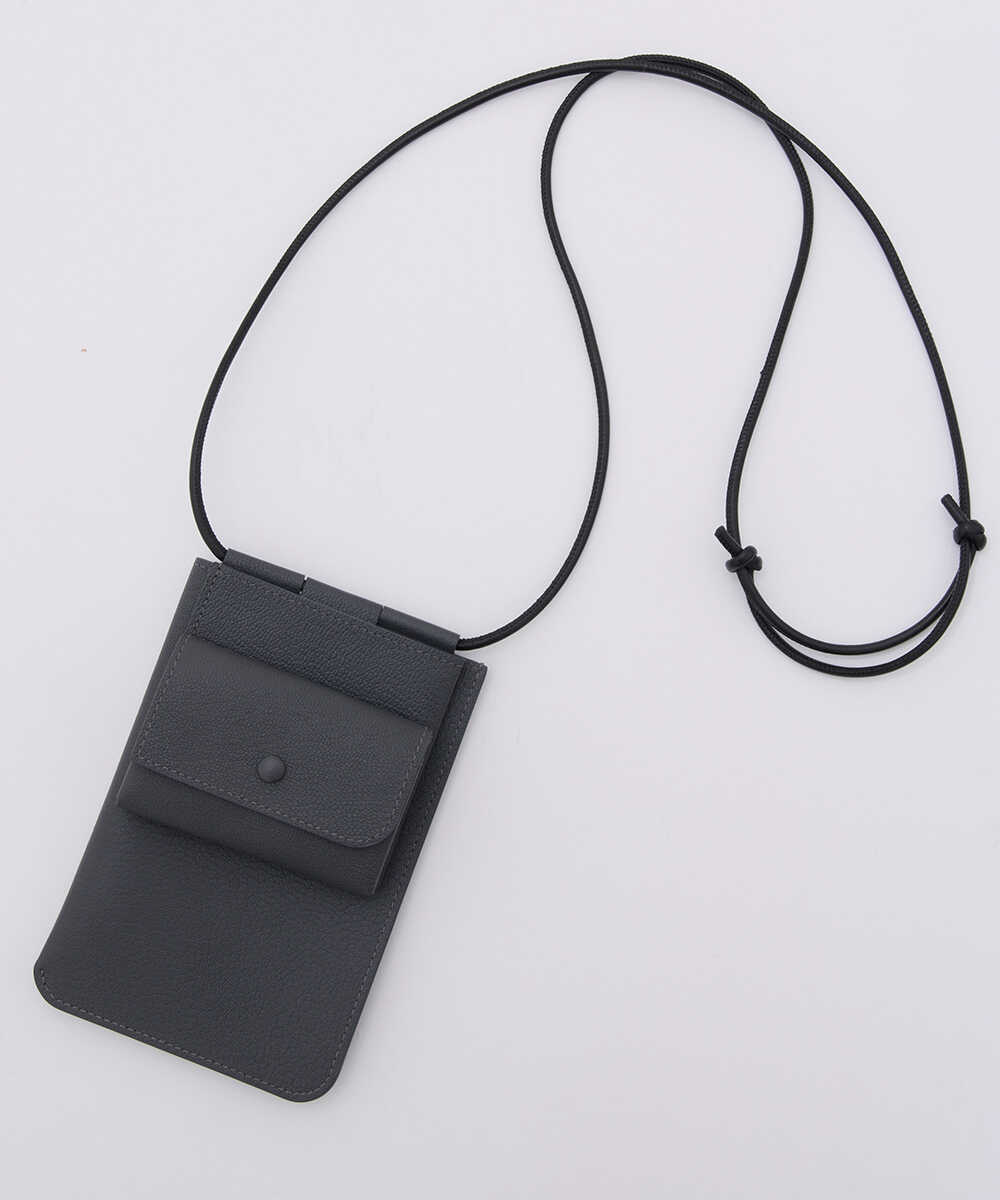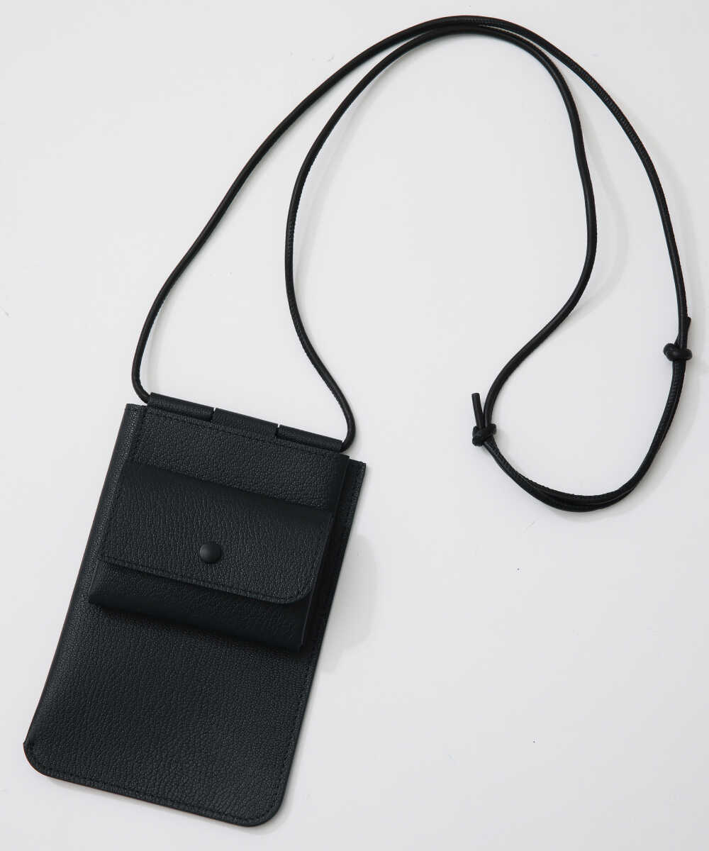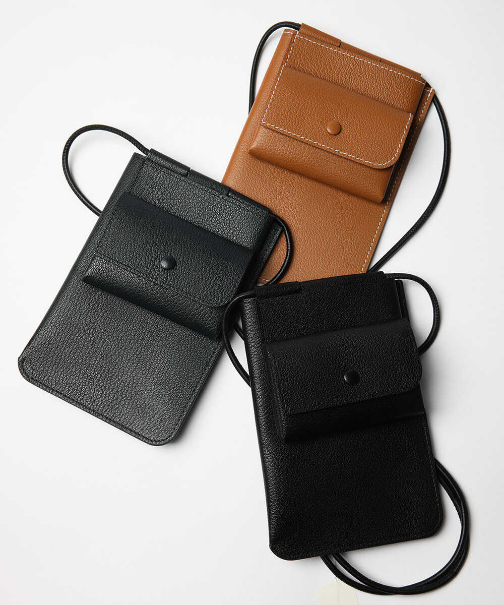 こちらはスマホケースなどで馴染みがある形かもしれないが、そこに最低限の財布機能を加えたものがこちら。カードや紙幣を入れられるポケットと、小銭を入れるためのスナップボタン付きコインケースがある。もちろんスマホを入れるスペースもあるので、これひとつあれば、外出できるというシロモノ。バッグを持ちたくない手ぶら派におすすめしたいウォレットがこちら。