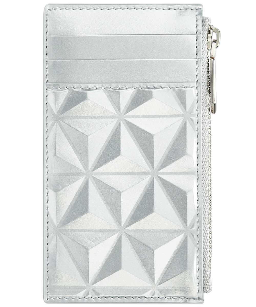 こちらは横型のフラグメントケース。まさに今の時代の財布といったらコレ。クレジットカードと小銭、数枚の紙幣を折りたたんで入れられるタイプ。このブランドのアイコンでもある、ライターに使われていたファイヤーヘッド柄がポイント。ジッパーの引き手の形もこのブランドならではのスタイルで、ここにブランドロゴが刻印されている。