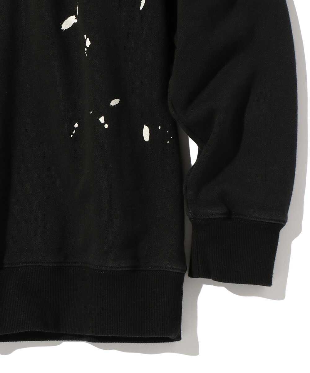 ちょうどいい肉感のボディはスウェットとロンTの中間のよう。そんな1枚をヘンリーネックに仕立て、ロゴやペイントを小気味にあしらった1枚。ブラックが基調なので派手になりすぎず、コーデにさりげないアクセントを加えられる。