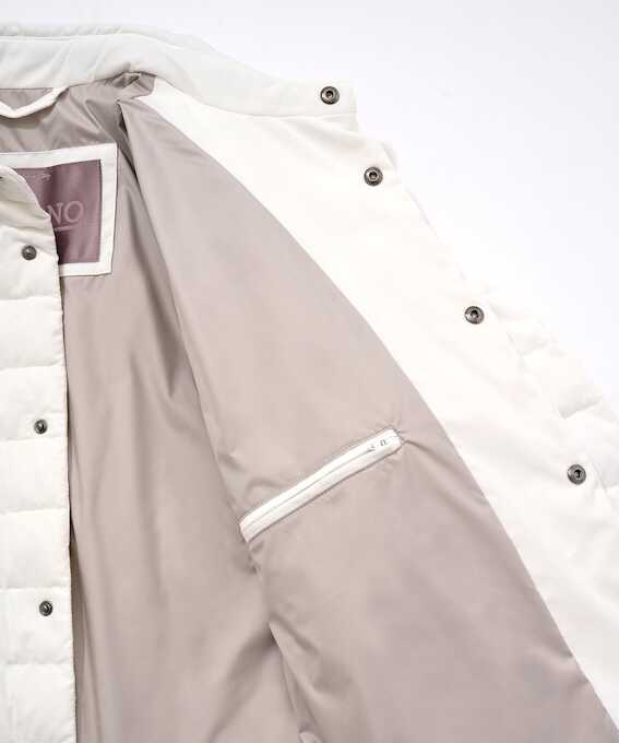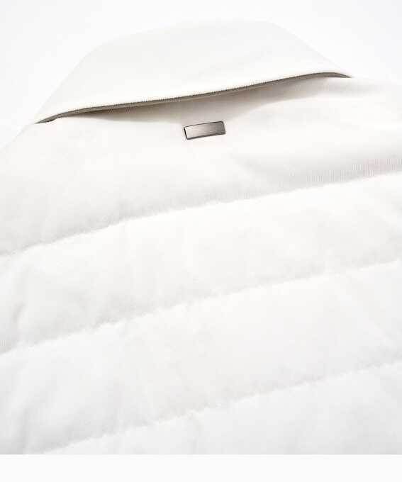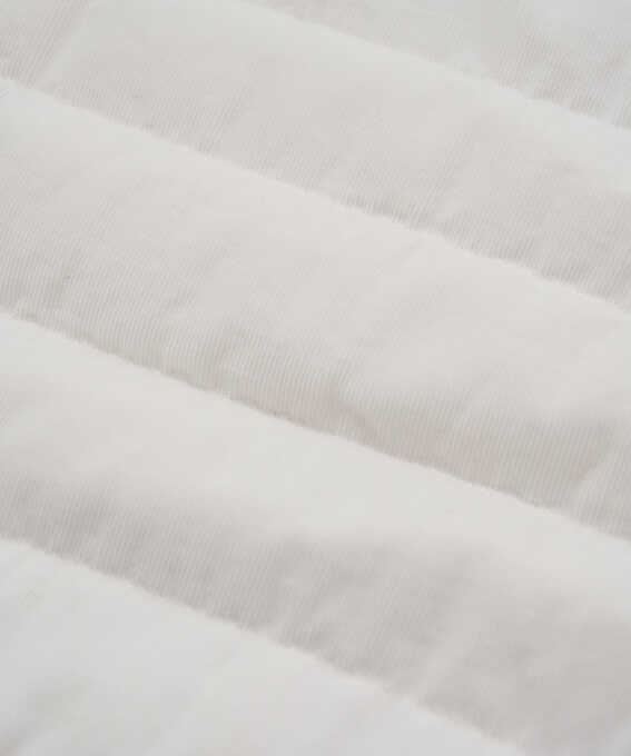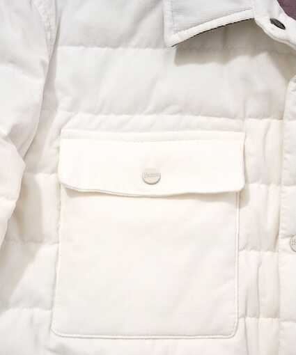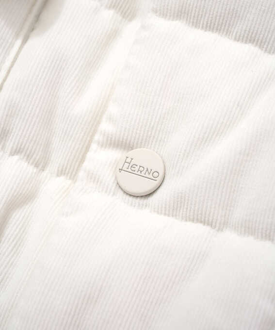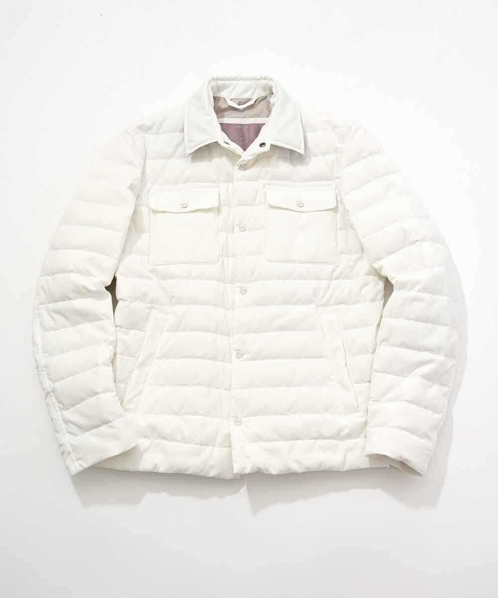 〈ヘルノ〉の代名詞である高品質かつ洗練されたダウンの魅力を、余すことなく享受できるGジャン型のダウン。表地がパッと見、ダウンに見えないホワイトの細畝コーデュロイで、上品な表情。薄手なので旅に持って行くにも最適だ。