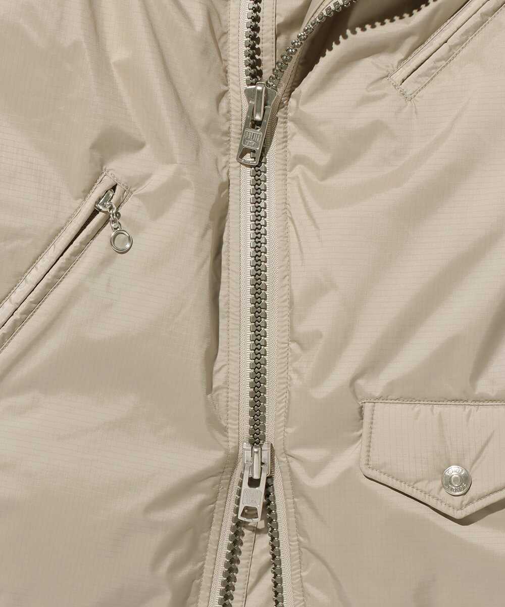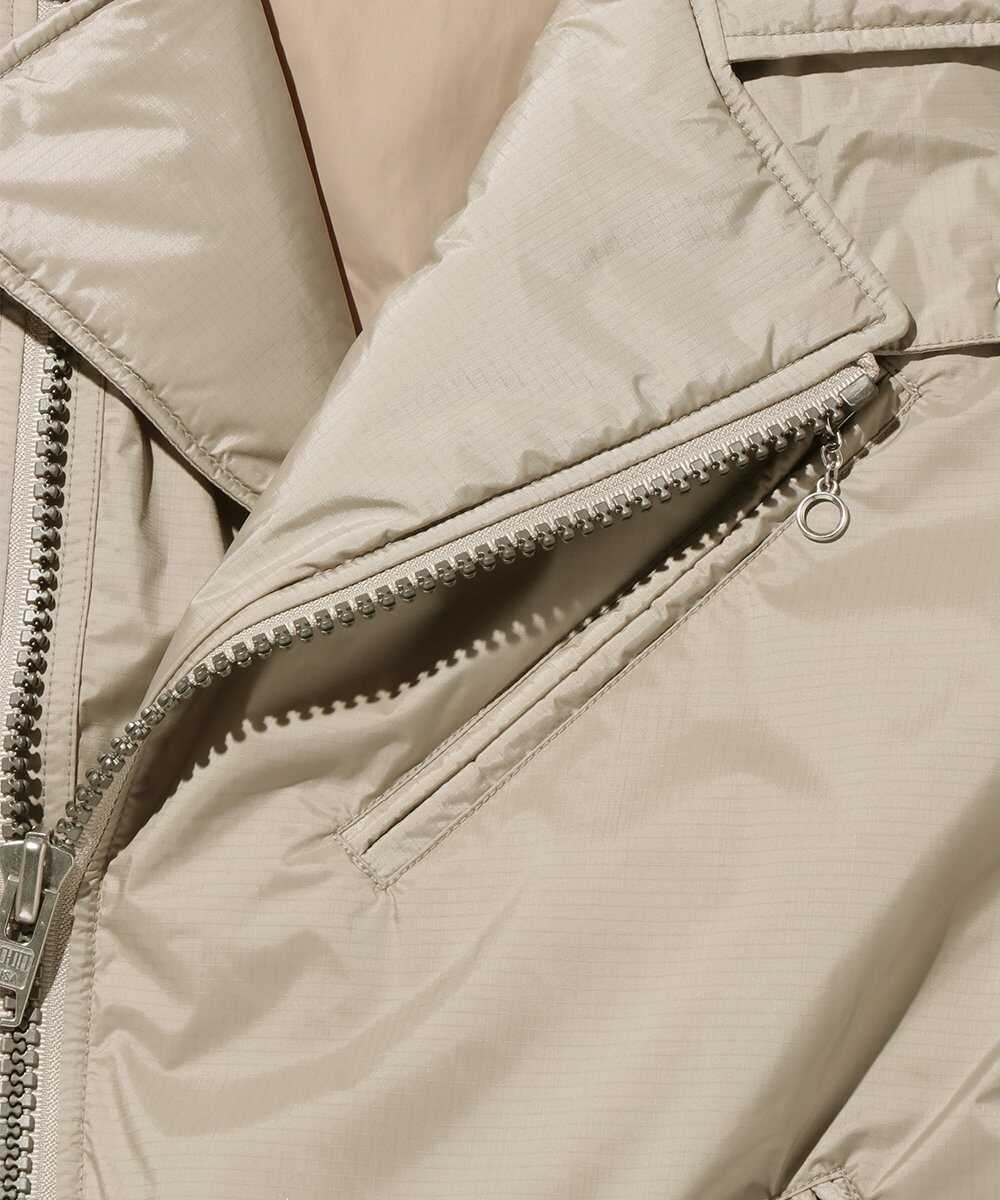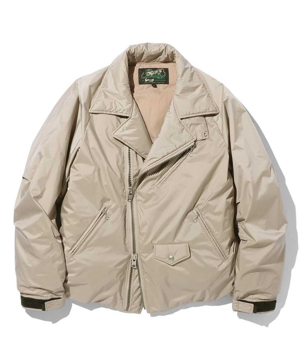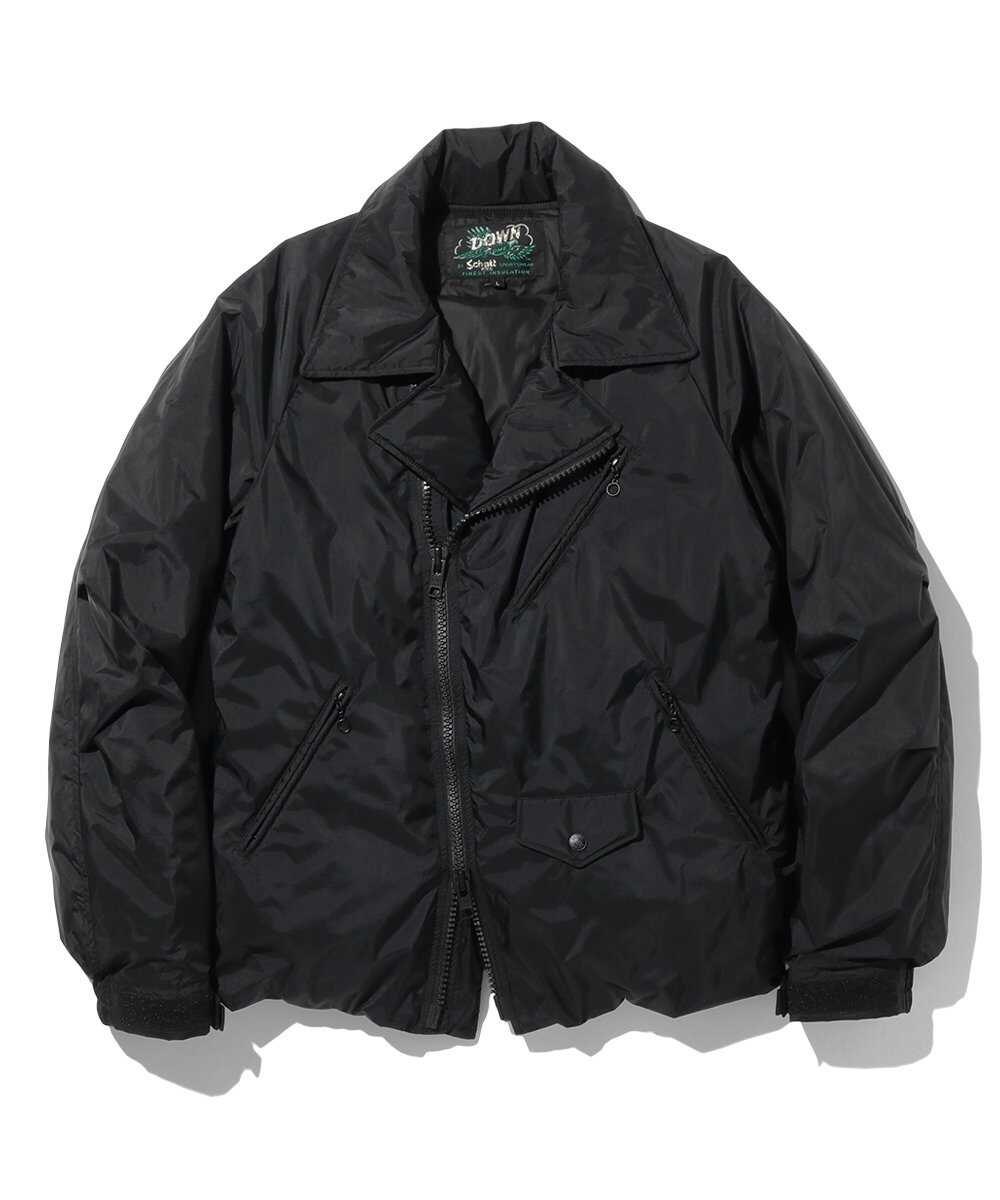 1941年に寝袋メーカーとして生まれ、現在は幅広いアウトドアアイテム、特にダウンブランドとして知られる〈ナンガ〉と〈ショット〉がコラボ。ありそうでない、ダブルのライダースデザインでダウンを製作。羽毛布団などの羽毛をリフレッシュして再利用した"リアクトダウン"を使用し、その保温性は格別!