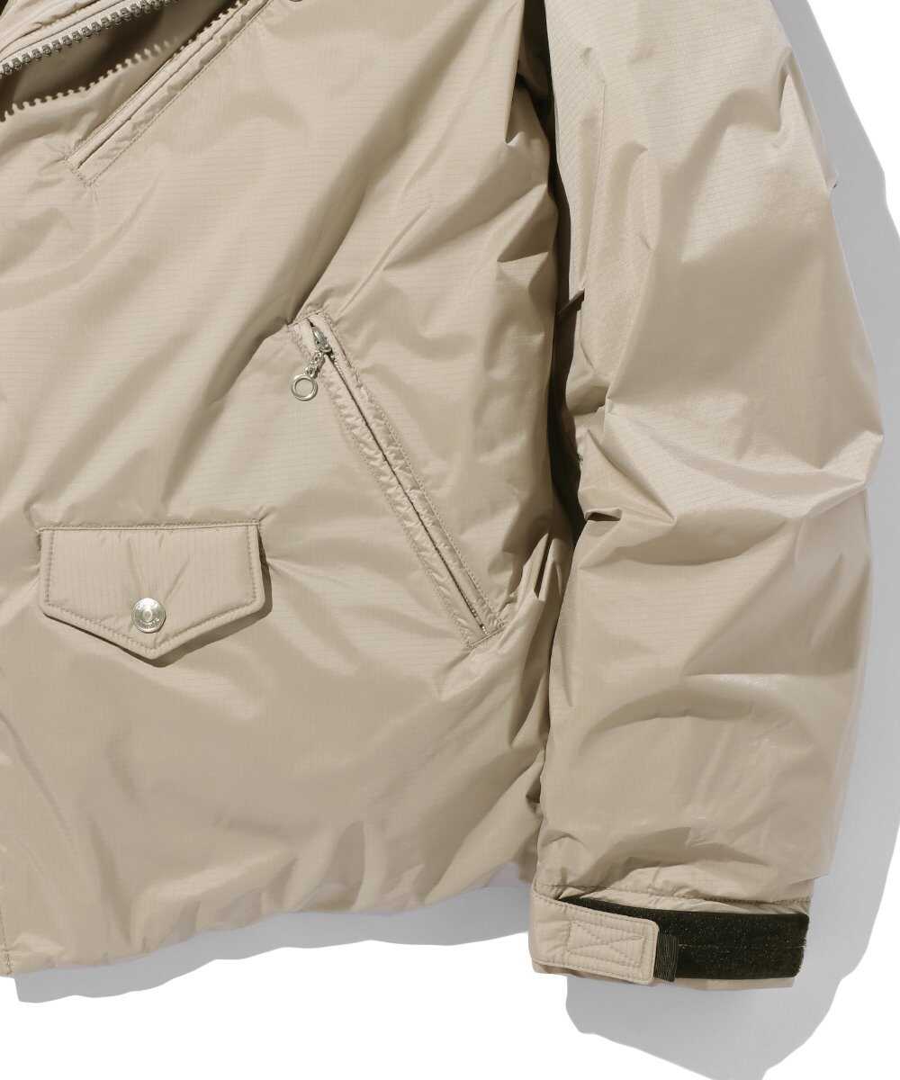高いレベルの透湿防水性能を備えた〈ナンガ〉の代表的な機能素材"オーロラテックス®"を表地に使用。また、襟はハイネックに変更でき、裾はドローコードで絞って調整できる。フロントジップポケット、フラップポケットのほか、前立て内側にもポケットを備えた便利な仕様で、ダブルジップ式で着脱も簡単。