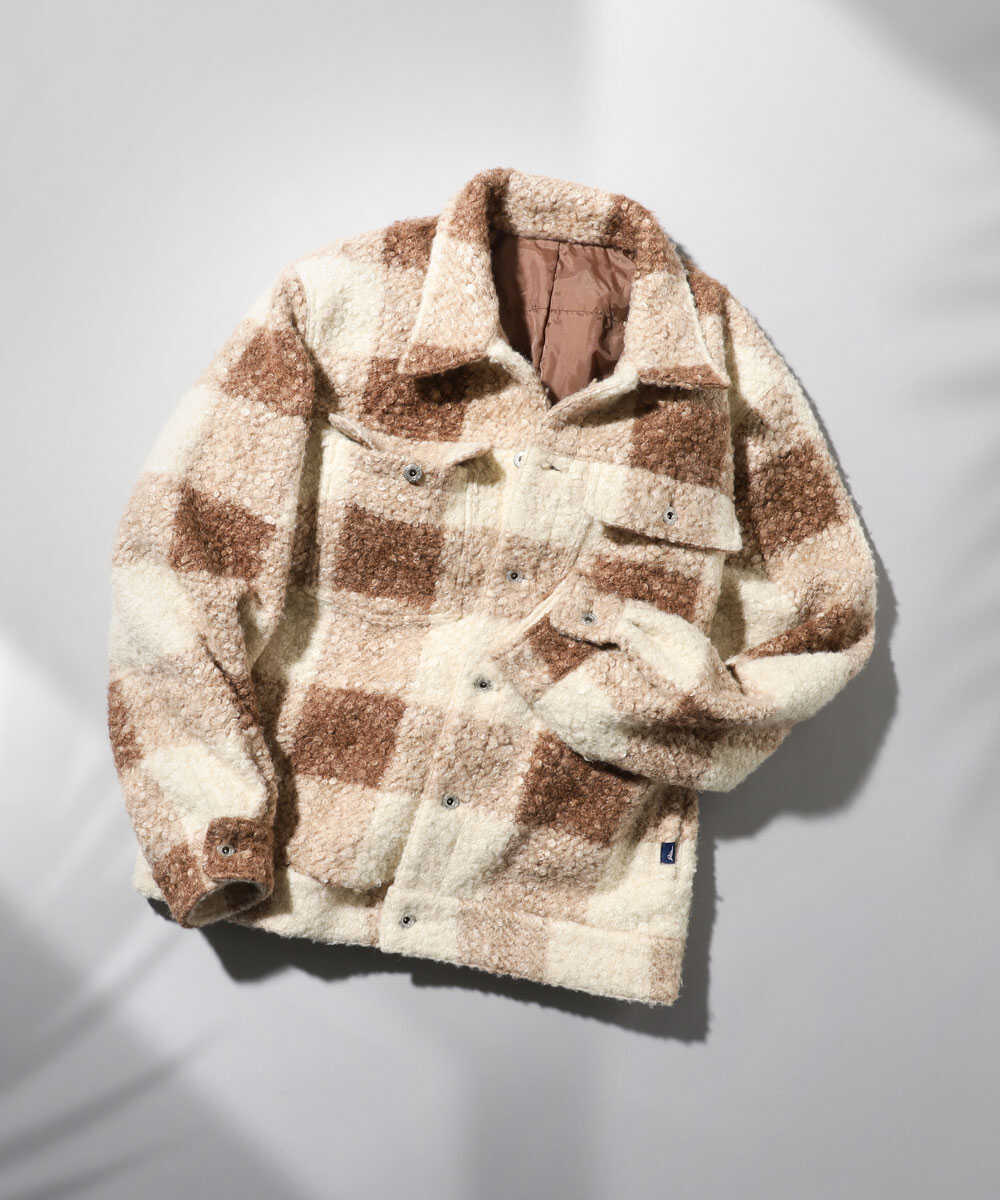 ボア素材をGジャン型に仕立てた、温故知新な1着。男らしさもありつつ、ボアの抜け感がこのブランドらしい仕上がりだ。しかも、薄手かと思いきや、中綿入りなので冬でも難なく着用可能。落ち着いたブラウンとベージュを掛け合わせたチェック柄はアメカジのよさを踏襲しつつ、都会的な雰囲気ともマッチ。滑りのいい裏地が付いているので動きやすく、脱ぎ着も楽ちんなのが嬉しい。