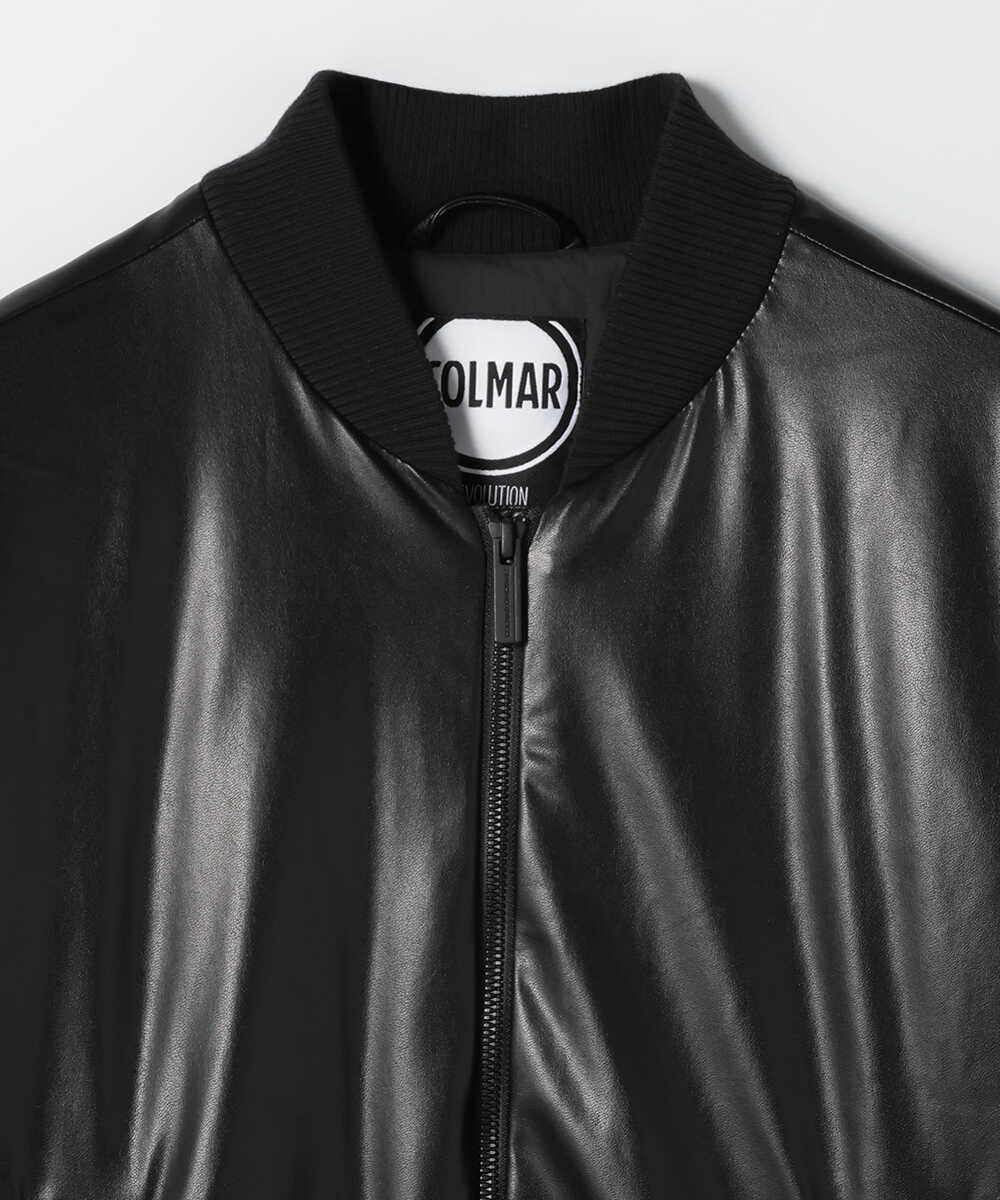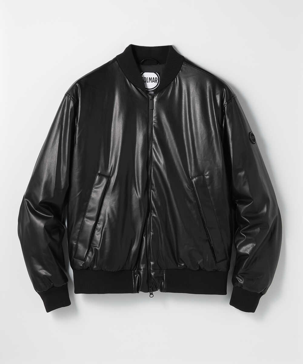 ボンバータイプで男らしさを演出しした、オールブラックでスマートな印象のエコレザージャケット。真冬にも対応する中綿入りで、上品な光沢感のある生地が美しく、様々なテイストのコーディネートに馴染む1着だ。ダブルジップ仕様でニュアンス出しも自由自在。