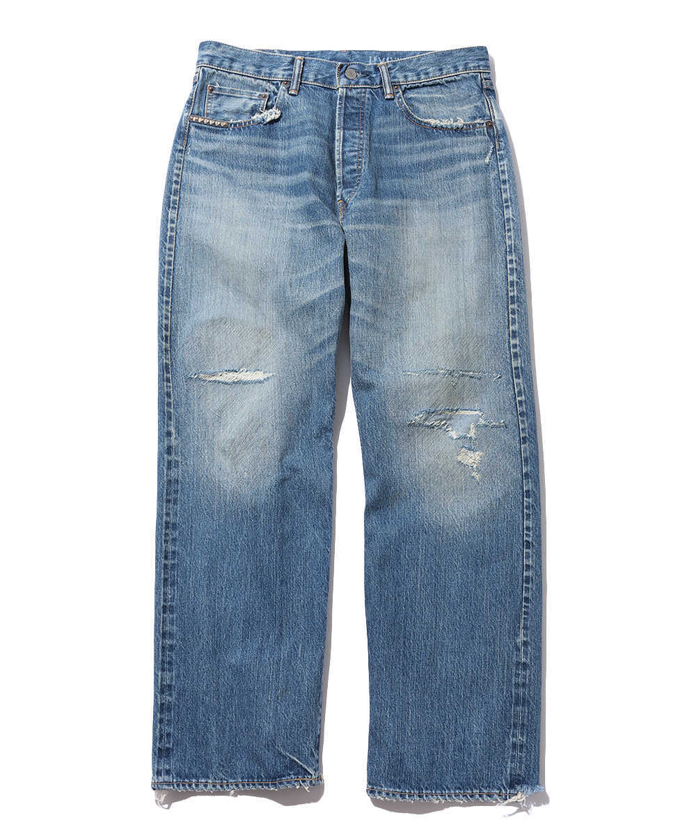 ブランドオリジナルのセルビッチデニムを使用したデニムパンツは、"AUTHENTIC AGED REPAIR(オーセンティック エイジド リペア)"と名付けられた加工により、長年穿きこまれた古着のような色落ちやアタリ感を実現。また、裾はセルビッチ仕様にするなど細かな部分までヴィンテージのディテールを踏襲。すっきりしたストレートのシルエットは万人に似合う仕上がり!
