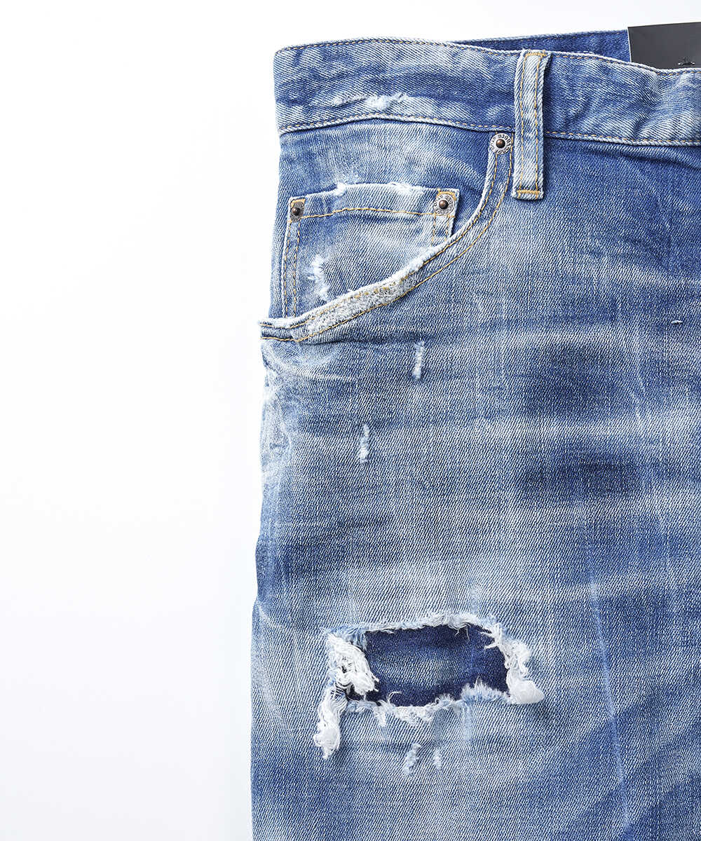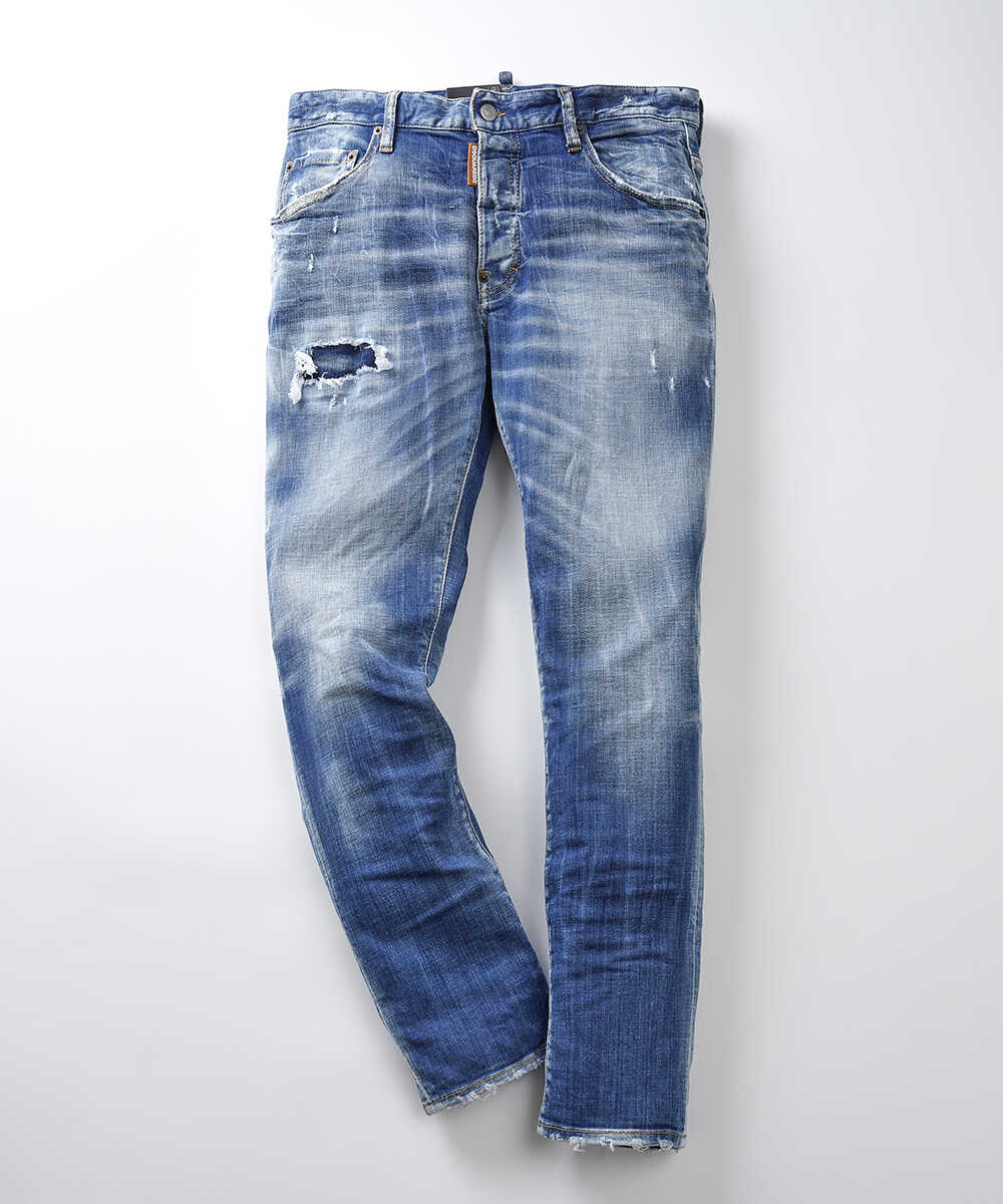 〈ディースクエアード〉の人気のモデル"SKATER(スケーター)"。ラグジュアリーデニムというカテゴリーの先頭を走るブランドの1本は、テイパードの細身シルエットが美しい仕上がり。ハイブランドならではの細やかなダメージ加工や生地の上質さが、デニムというラフなアイテムにも関わらず、穿く人に品格を与えてくれる。12オンスのストレッチデニムで仕立てた、日本人の体型に合いやすい1本。