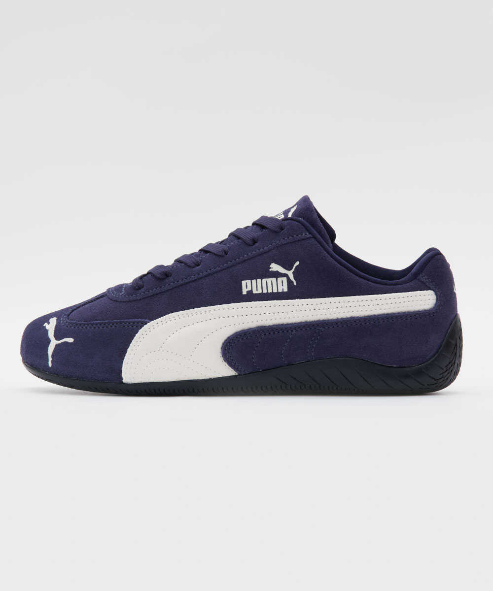 1980年代から1990年代にかけてF1グランプリのドライバーが履いていた耐火レーシングシューズを踏襲したルックスが特徴の"スピードキャット"。レディスから火がつき、現在の薄底シューズブームを牽引する1足。独特のなめらかなラインと空気力学にもとづいたデザインは個性出しにも貢献。履いていたら女性陣から"おっ!"と思われること請け合い。