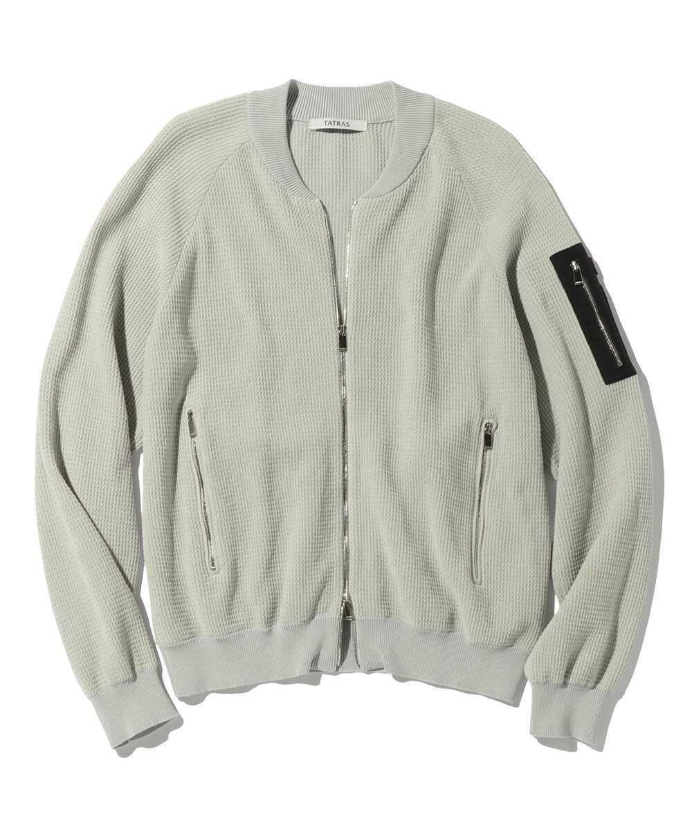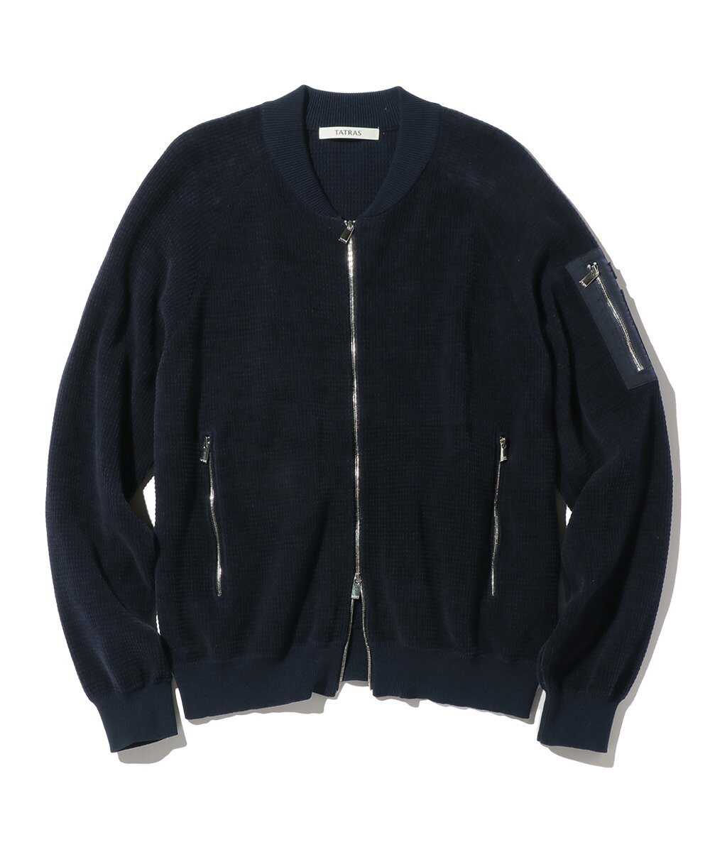 かっこいい大人になるべく日夜奮闘している皆様に朗報。着るだけで男らしさと上品さをまとえる1着が、〈タトラス〉から登場だ。それがこのニット素材で仕立てられたMA-1タイプの1着。男らしいミリっぽさはしっかりありつつも、ボディにはベルベット調のニット素材を採用しているので、品のよさはかなりのもの。カーディガン感覚でも着用できるので、今ならダウンのインナーとして、春になったら主役ブルゾンとして活躍させられるから押さえておくのが勝ち。これは見逃せない新作だ!
