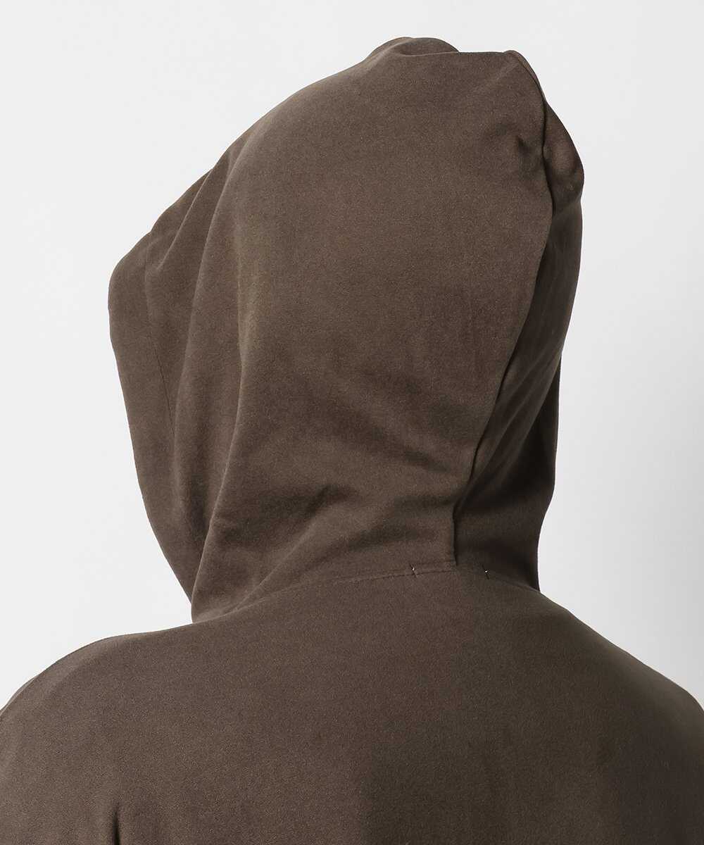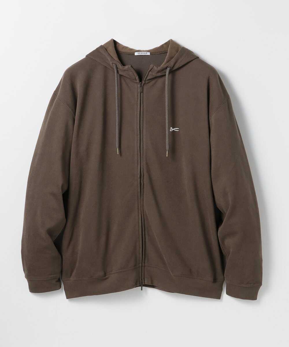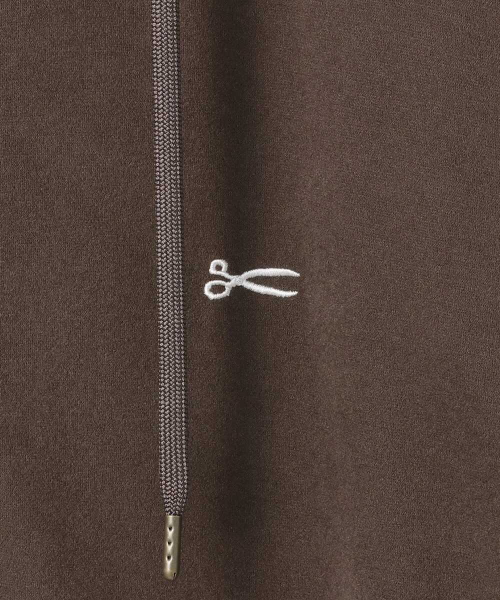 カジュアルなパーカをブラウンカラーで大人が着るにふさわしい仕上がりに。シックな印象を与えるカラーに加えて、ほどよい肉感とハリを備えた生地で安見えしない質感を実現。そこにさりげなくあしらったアイコニックなシザー刺繍が目を引く。