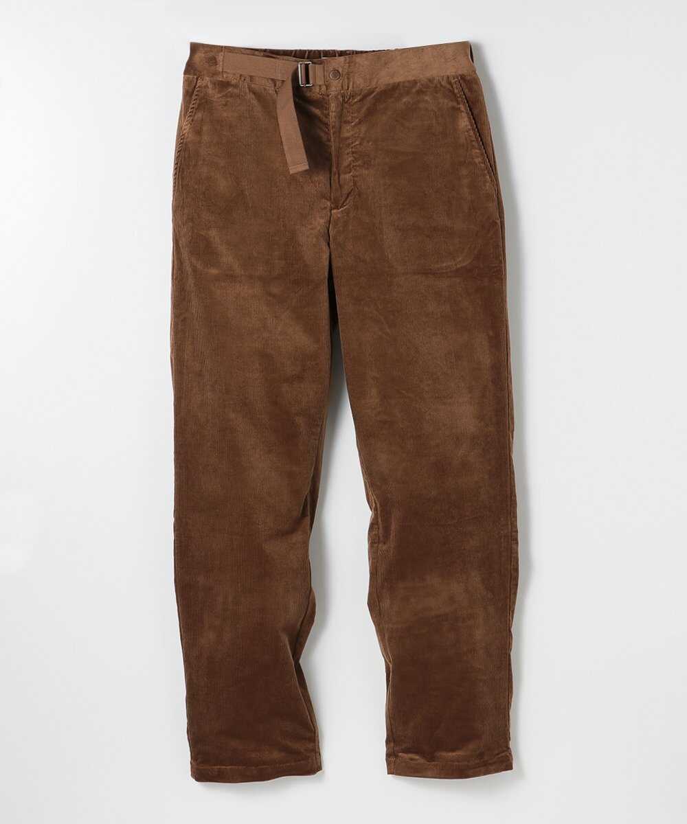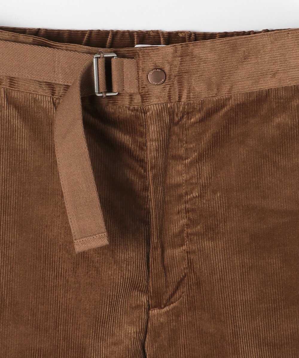 ストレッチ性のあるコットンとモダールの混紡素材で織りあげたコーデュロイパンツ。ほどよい厚みと柔らかな肌触りで、快適な穿き心地を楽しめる1本は、ウエストに付いた同色のベルトがアクセントに。タックインで見せてさりげないアイキャッチを作ることができ、1本で主役として映える。