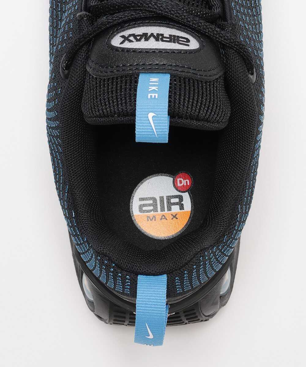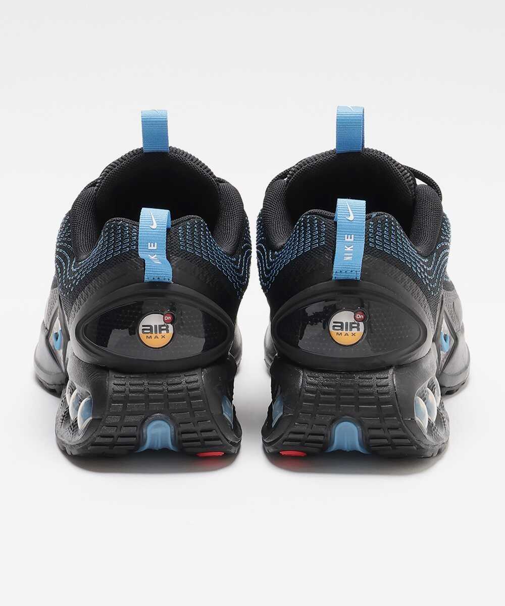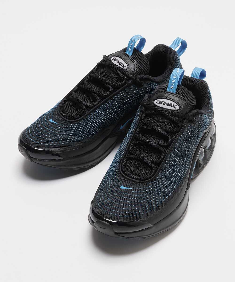 近未来的なデザインと優れた機能性を兼ね備えた〈ナイキ〉が近年力を入れてリリースする最新モデル。特徴は、4つのチューブ状のナイキエアバッグを取り入れた"Dynamic Air(ダイナミック エア)"を搭載している点。洗練された1足はさりげないブルーの差し色が際立っている。