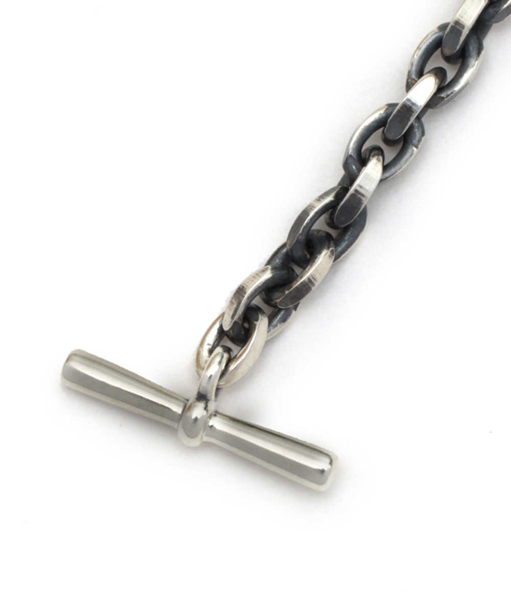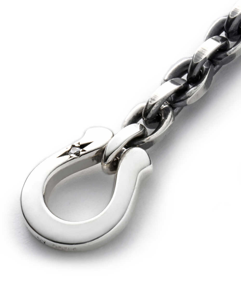 同デザインをすべてシルバーで統一した1本も是非おすすめしたい。こちらはよ〜く見るとチェーン部分は燻したシルバーで違いを出しており、綺麗に仕上げたホースシューのモチーフが光り輝くようにデザインされている。