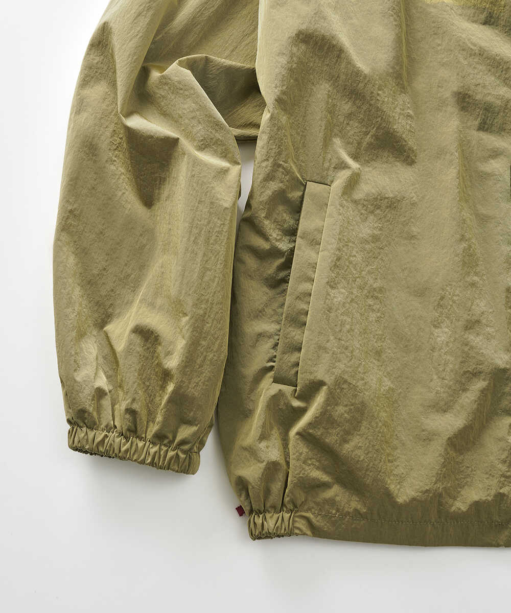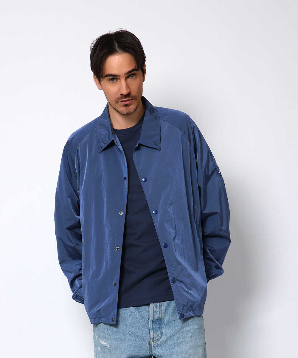 高級感ある生地の艶がアイキャッチなコーチジャケットは、どこかヴィンテージにも精通する仕上がり。ラグジュアリーブランドも採用するリモンタ社のナイロン素材で、撥水、防風、透湿、マシンウォッシャブルと多様な機能性を備えている。大人が着るコーチジャケットなら安っぽく見えるのは避けたいところ。