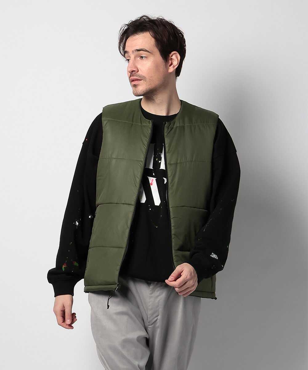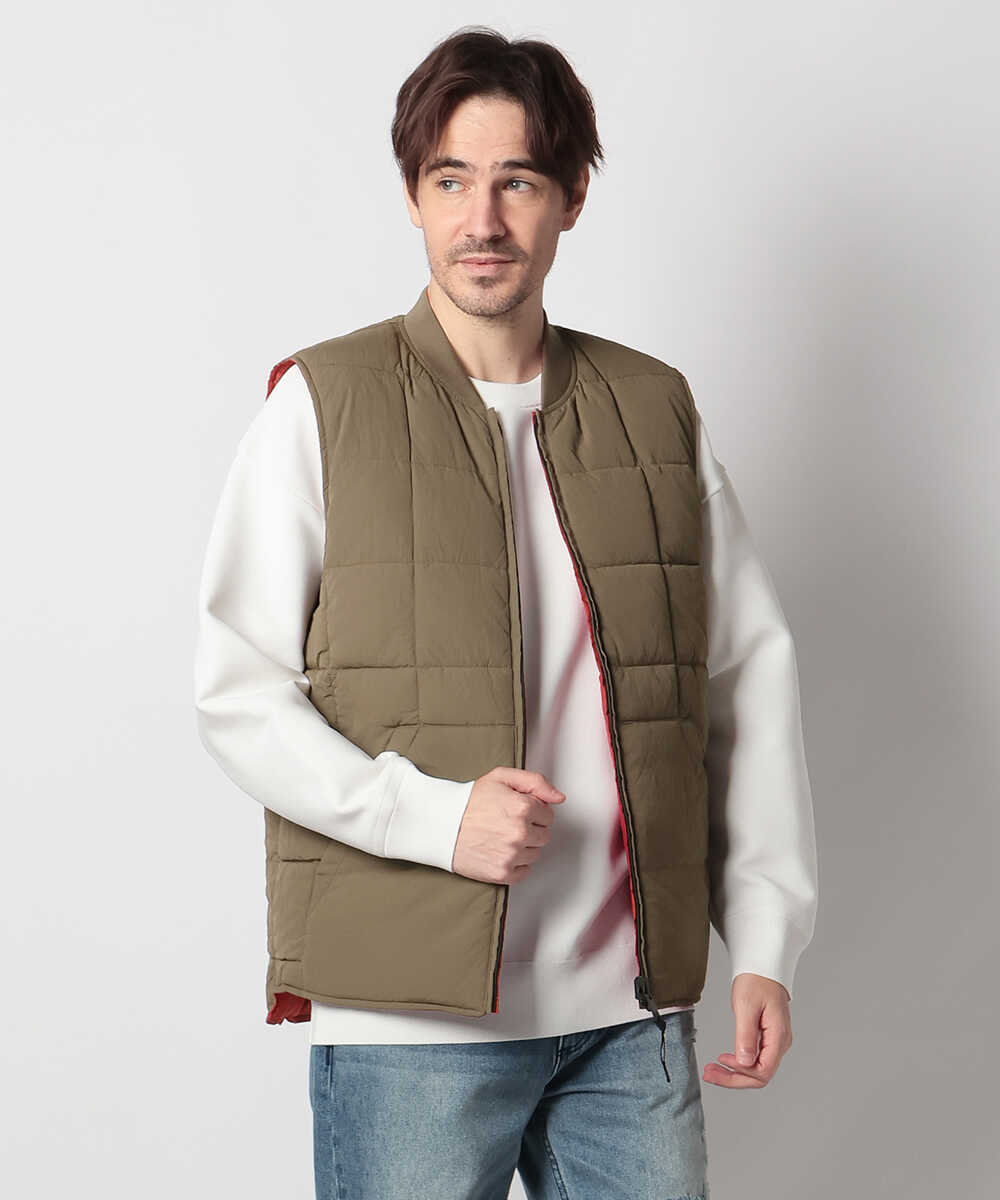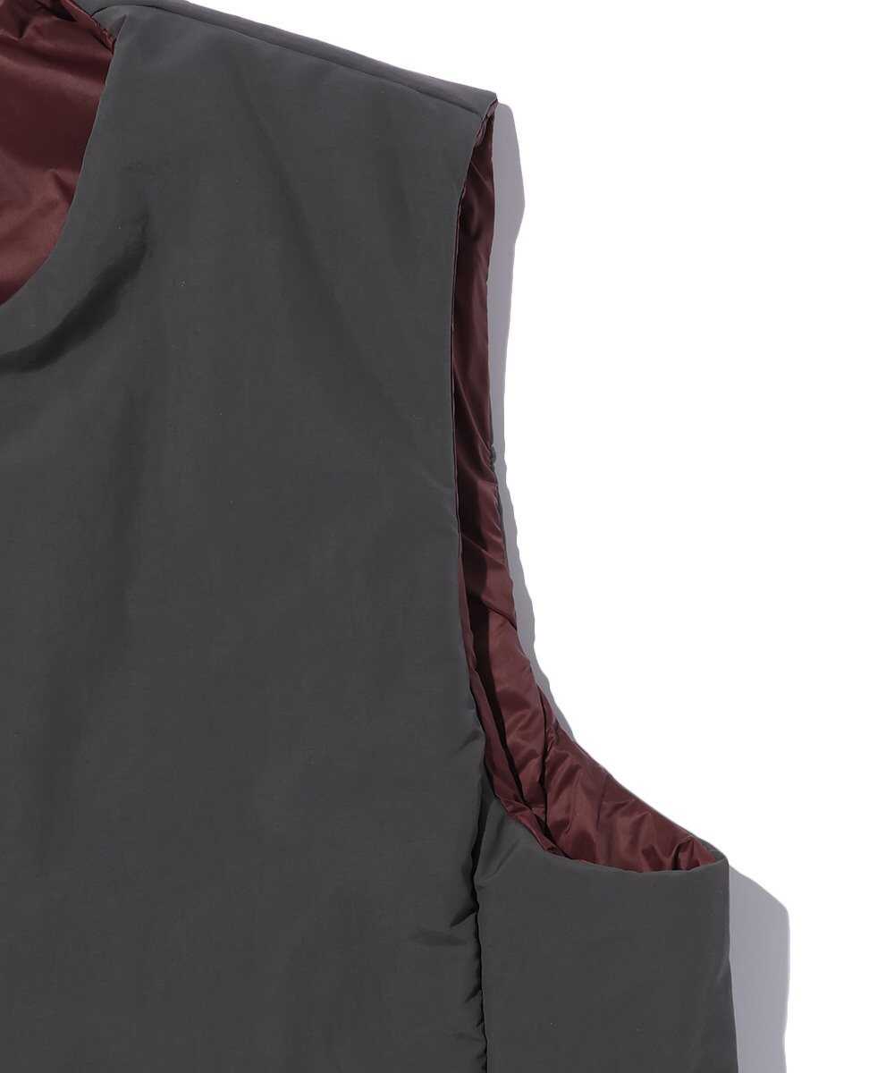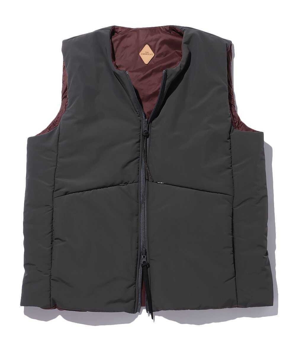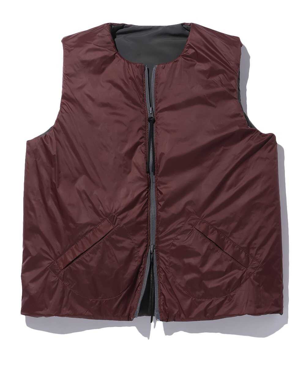カリフォルニア州ベンチュラの自由な空気を纏った、ノーカラーのリバーシブルベスト。表には耐久性に優れたサプレックスナイロン、裏には高密度ナイロンタフタを採用し、気分に合わせてマットな質感と艶やかな印象を使い分けられるのが嬉しい。中綿の"コアブリッド™B"は静電気を抑えつつ高い保温力を発揮。シャツやパーカの上にさらりと羽織るだけで、こなれた大人カジュアルが完成する。
