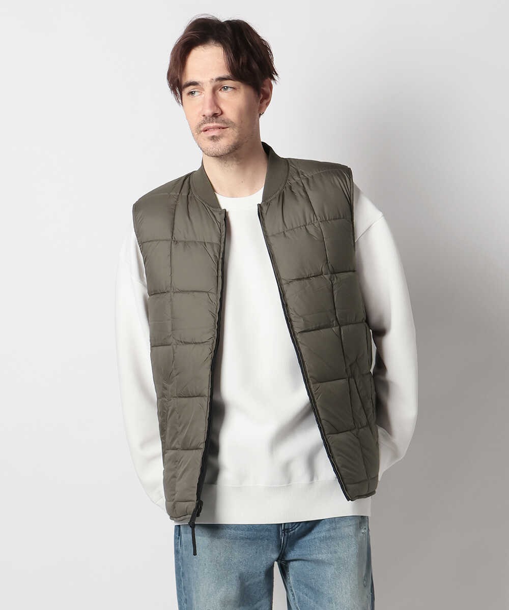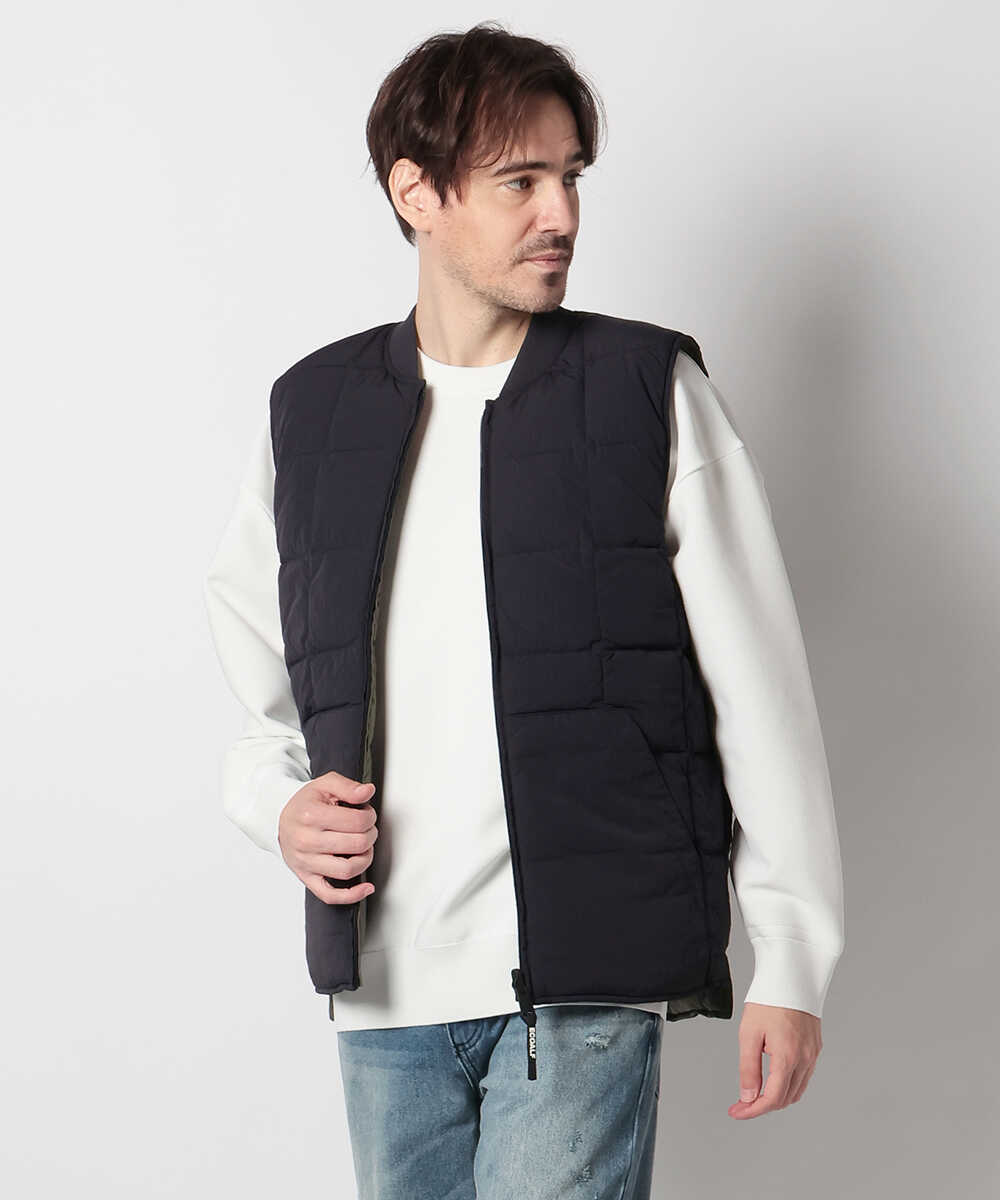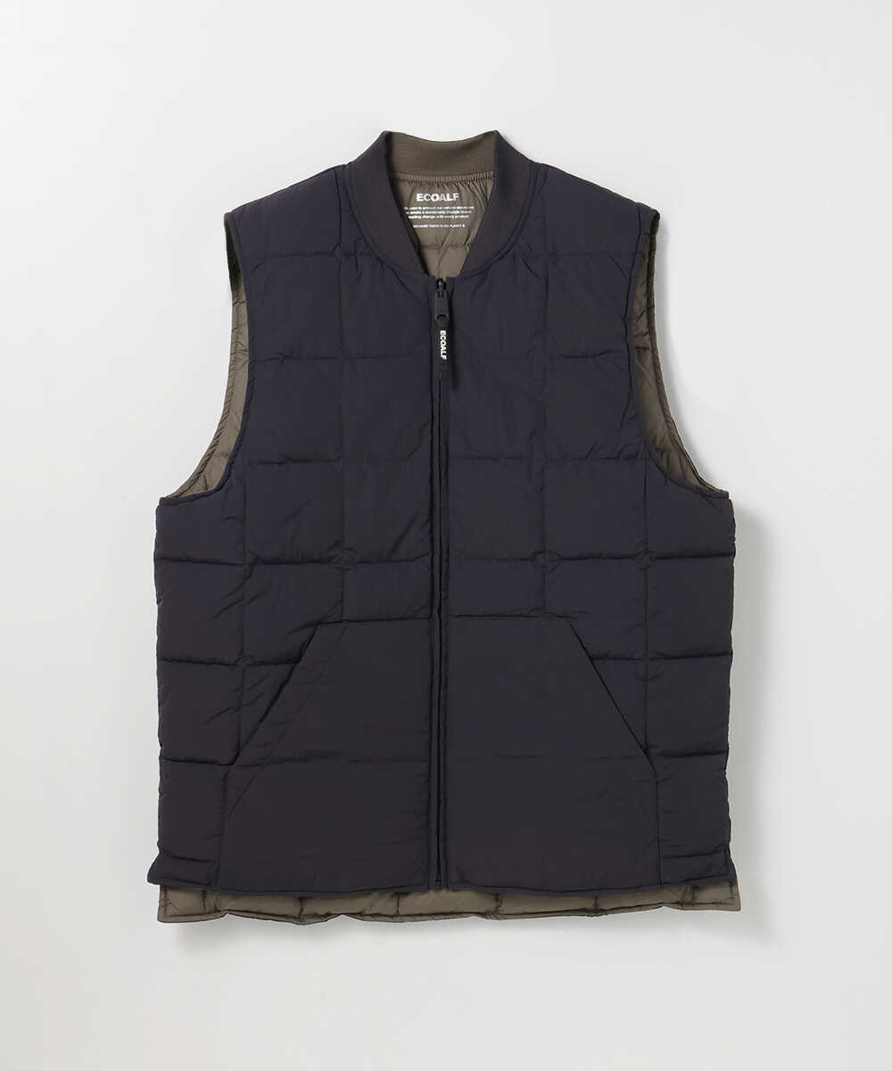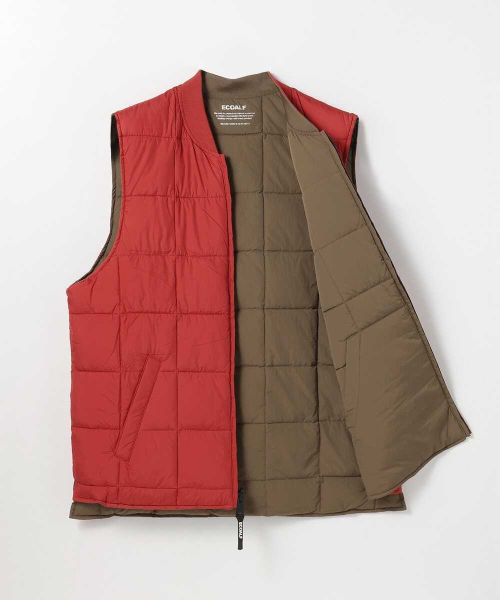環境先進ブランド〈エコアルフ〉が贈る、スタイリッシュなリバーシブルベスト。スポーティーなキルト面と、上品なマット面という2つの顔を持ち、シックな面とあざやかな面の洗練された配色が、重くなりがちな冬から春への着こなしに華を添える。リサイクル素材を使用しながらも、妥協のない機能美と軽快な着心地を両立。ポケットも内・外に完備されており、手ぶらでスマートに出かけたい週末にぴったりの逸品かと。