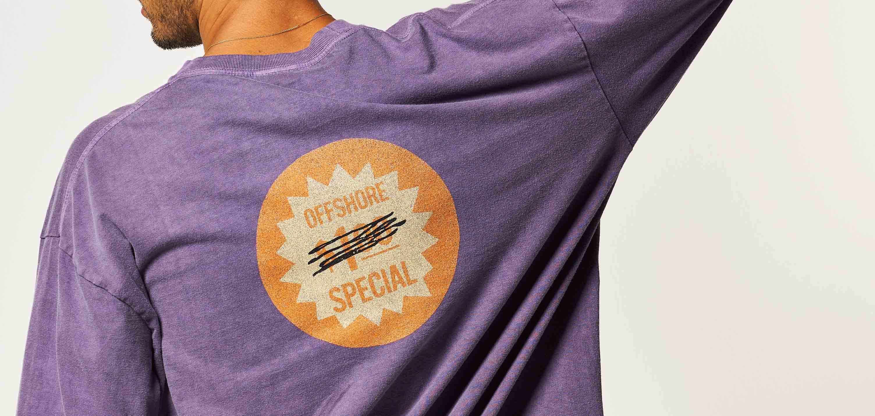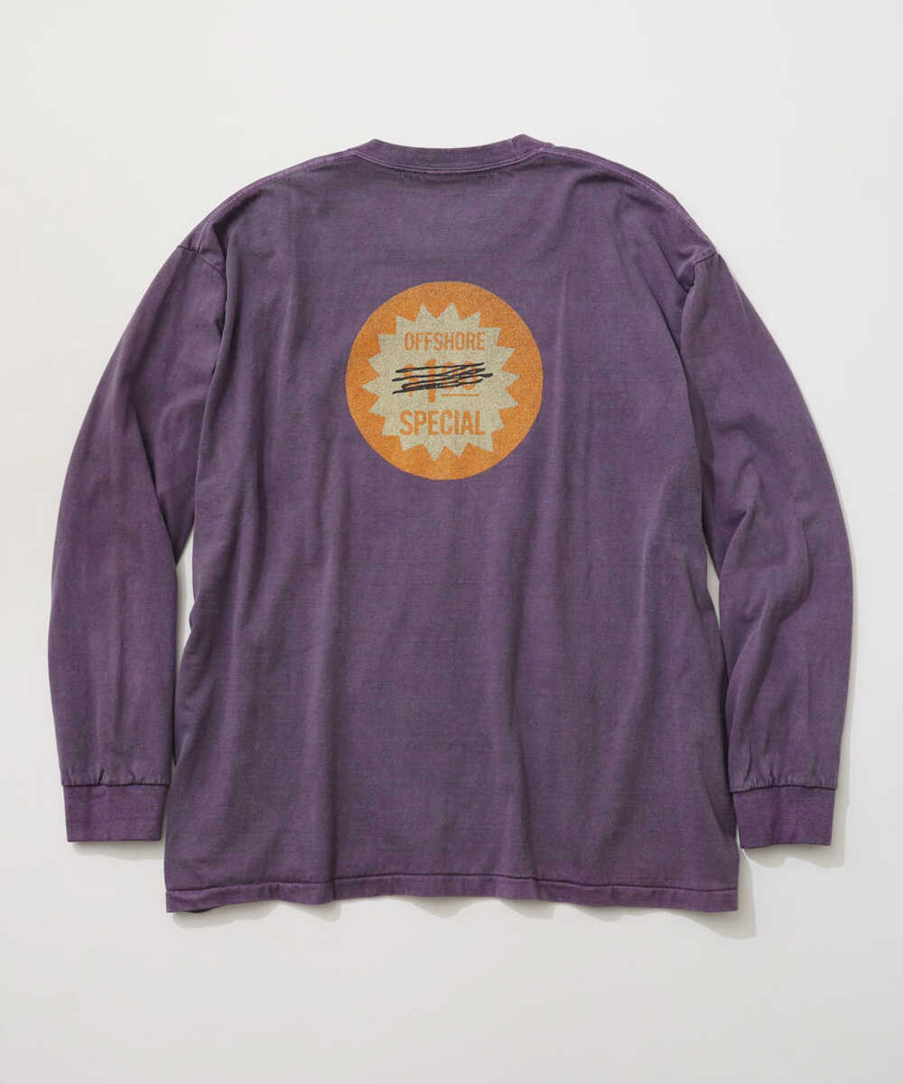 アメリカのスーパーにあるステッカーをモチーフにした、遊び心あふれる1枚。ピグメント加工による色褪せた風合いが、西海岸の太陽を感じさせてくれる。背中の大胆なグラフィックが、デニム姿にほどよいストリート感を注入してくれるはず。