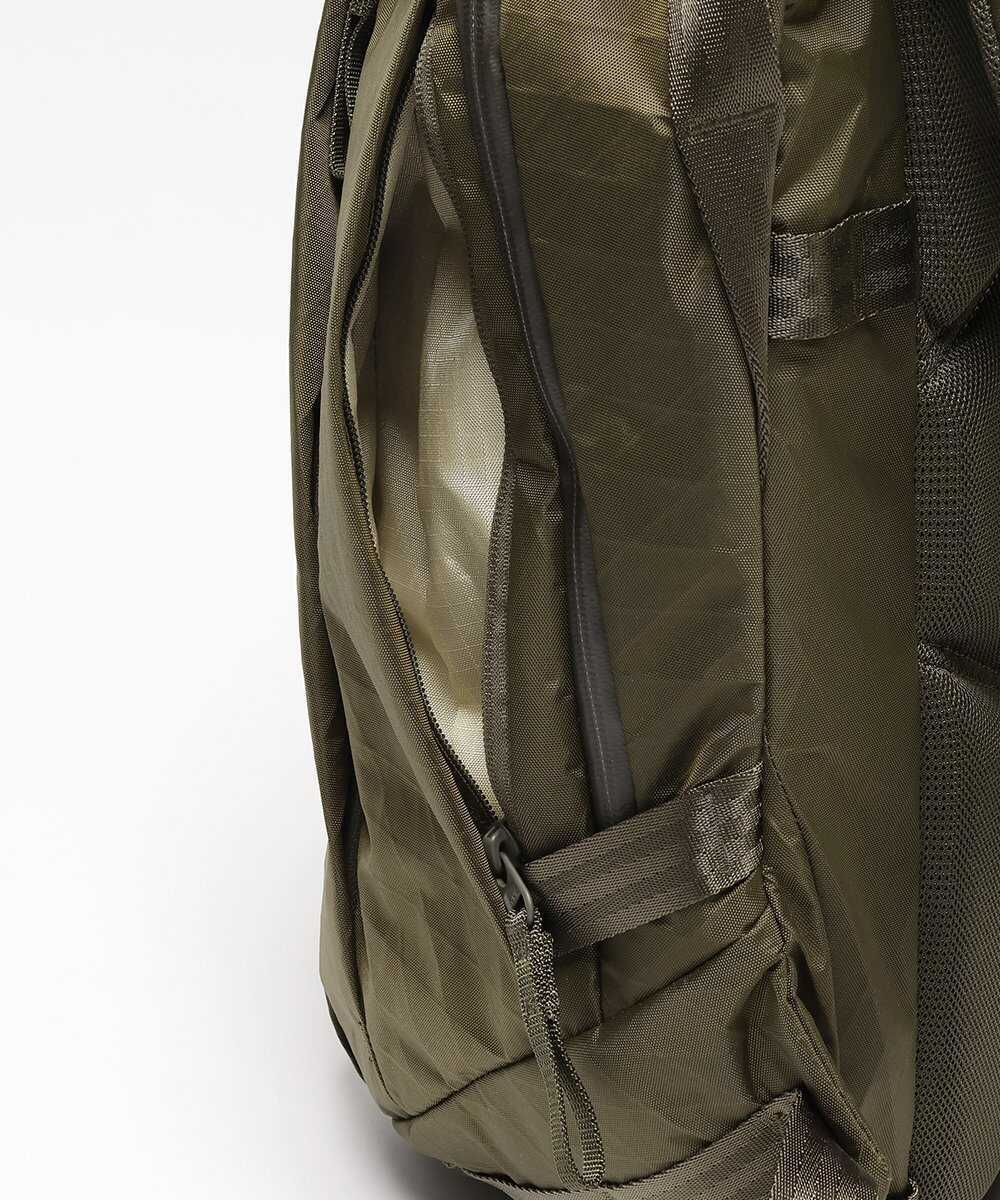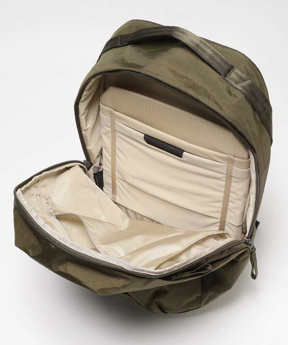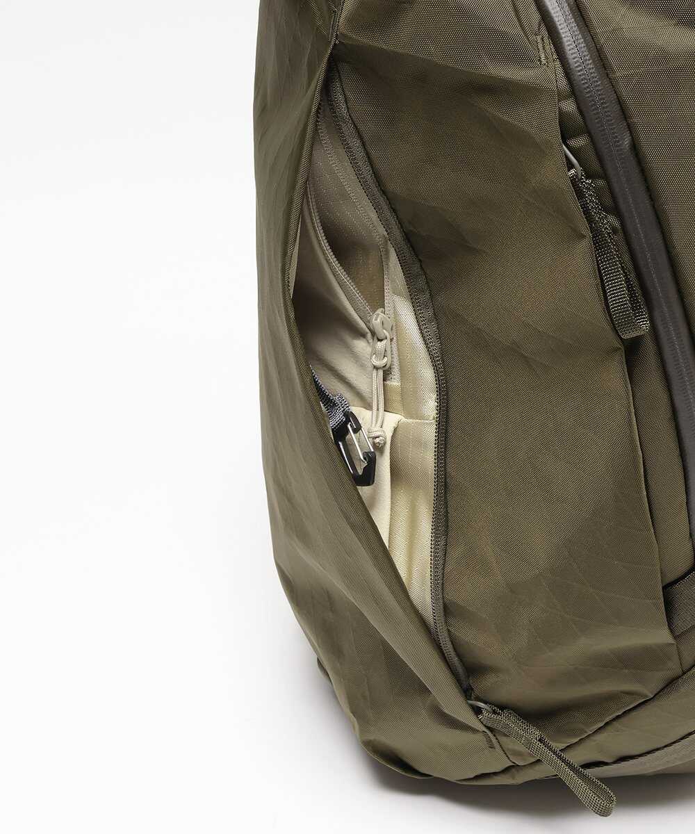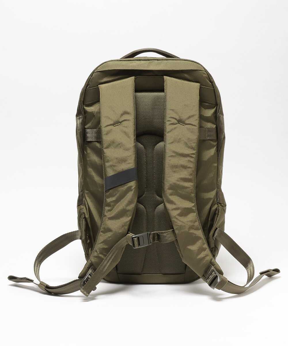 次にご紹介するのは、より汎用性の高い20Lモデル。現在はオリーブカラーのみの取り扱いだが、これがまたいい。ミリタリー由来のタフさを持ちつつ、洗練されたフォルムのおかげで、仕事着に合わせても野暮ったくならないのが魅力だ。