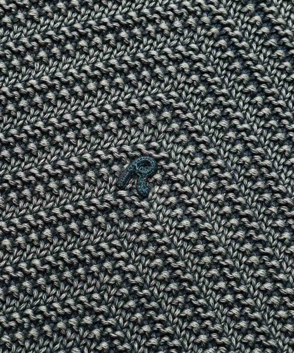 最大の特徴は、ヘリンボーンの縫い目やリブ部分にあらわれる立体的なアタリ(色落ち)。これが単なる無地ニットにはない奥行きを生み出している。首元や袖口、裾のリブはしっかりとした作りで、型崩れしにくいのも嬉しいポイント。左裾にはさりげなくブランドロゴが配され、控えめながらも確かなアイデンティティを主張している。素肌に触れても心地よい柔らかな編み地は、一度袖を通すとわかるはず。