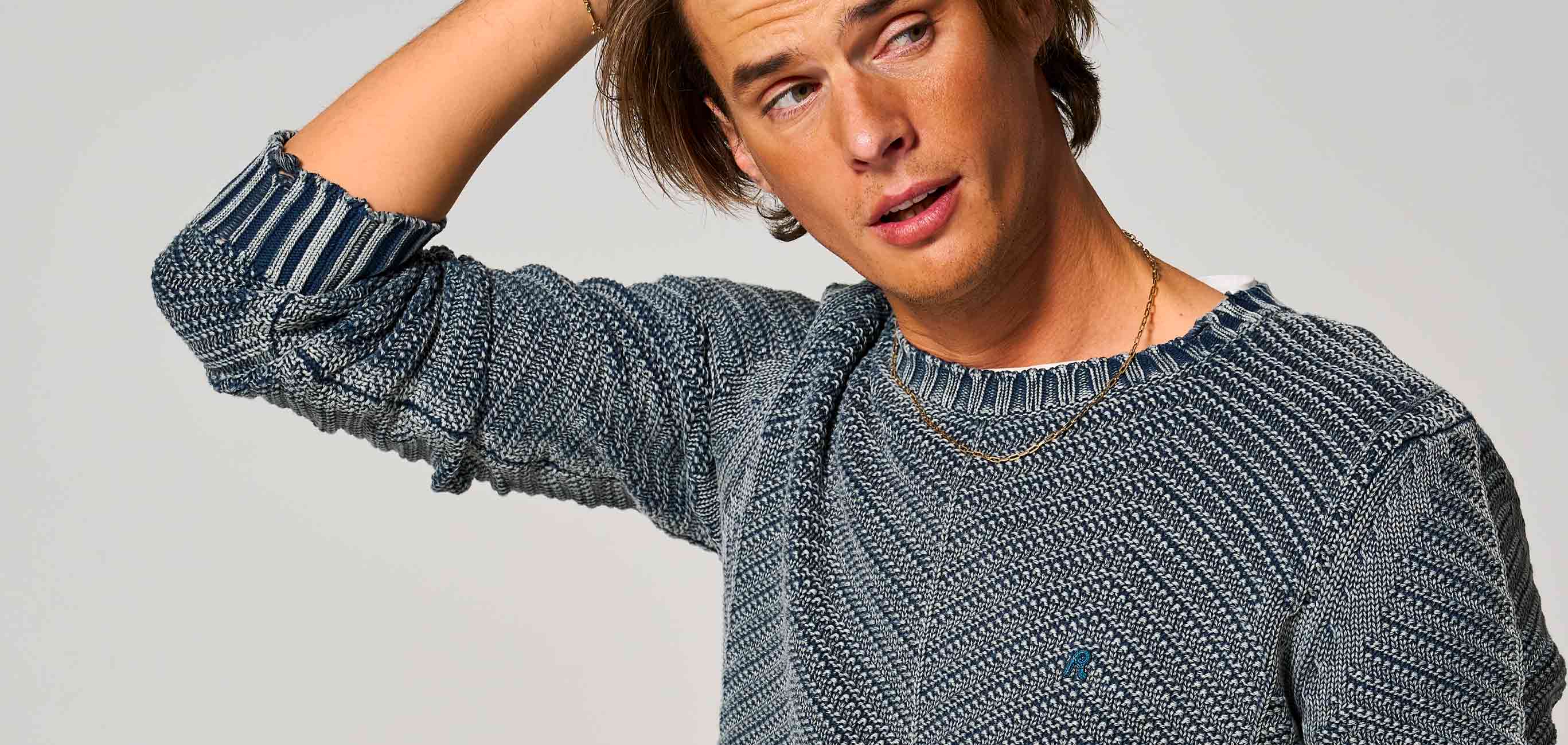 カレンダーをめくれば、アクティブに動ける春はもうすぐそこ。とはいえ、実際は日によって寒暖差が激しく、何を着ていくべきか頭を悩ませることも多いはず。そんなスイッチの時季、お洒落の完成度を左右するのは、実はアウターの陰に隠れたインナー。なぜなら、屋内や車内でアウターを脱ぐ機会が多いから。もし、それがただの肌着に見えてしまっては、大人の品格も台無しだ。そこで手に入れておきたいのが、1枚で主役級の存在感を放つ〈リプレイ〉の褪せ色ニット。これなら冬の名残がある今時季から春本番まで、常に余裕のあるスタイルを維持できると思わない?