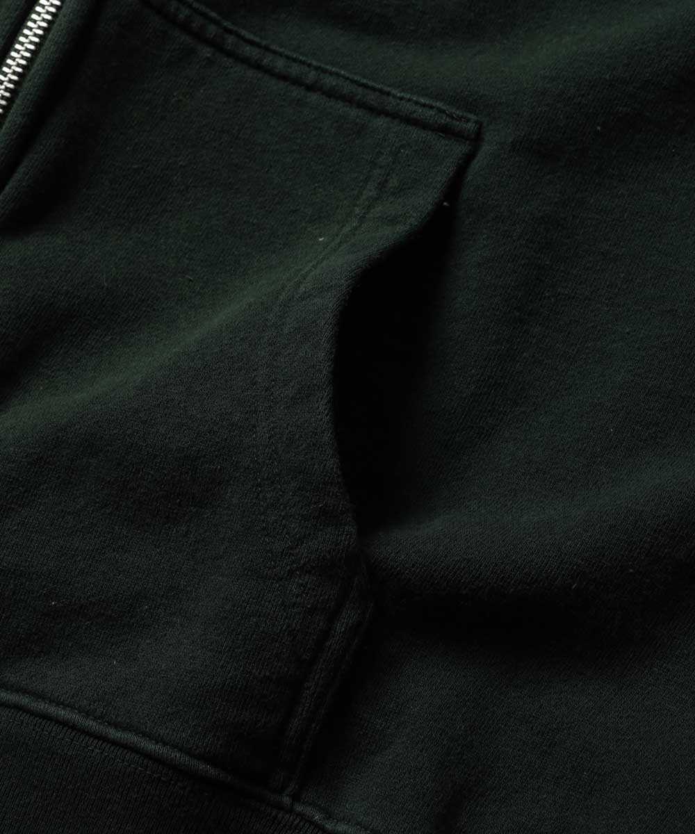 "大人が着る、シンプル・イズ・ベスト"を体現する〈メイプル〉のジップアップパーカ。ビンテージ風の加工を施すことで、長年愛用したような味のある風合いを見事に表現している。左胸にはカリフォルニアの風や波をイメージしたCAのロゴ刺繍を配し、シンプルながらも西海岸らしいリラックスしたムードが漂うデザインだ。素材には適度な厚みを持たせた生地を採用しており、季節の変わり目のライトアウターとして申し分ない仕上がり。