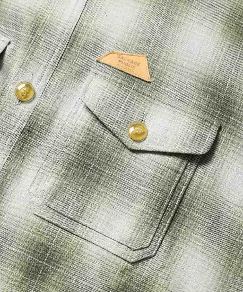 〈サルベージ パブリック〉から登場したのは、シックなトーンでまとめられた大人顔のオンブレチェック柄CPOシャツ。カジュアルなチェック柄も、落ち着いた配色なら野暮ったく見えず、都会的な着こなしにすんなり馴染む。デザインのよさもさることながら、注目すべきは春先の羽織りに最適な“ちょい”厚手の生地感。薄すぎず重すぎない絶妙なボリュームのおかげで、Tシャツのうえにさらりと羽織るだけで安心感のある着心地を提供してくれる。