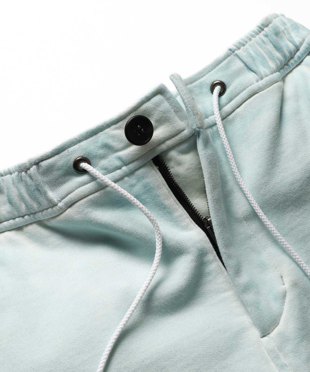 下半身を担うのは、パーカと同素材で仕立てられた美脚スウェットパンツ。同じくコールドダイによるフェード感のある生地をベースにしながら、こちらはより"動きやすさ"と"美しいシルエット"に特化した作りになっている。内股をリブ仕様にすることで抜群の可動域を確保しつつ、裾まわりはダボつかないようスッキリと計算されたテイパードラインを実現。パーカ同様、アウトラインに生地裏を効かせたデザインが縦のラインを強調し、脚長効果をさらに後押ししてくれる。休日の街着として、1枚でも大活躍間違いなしの完成度だ。