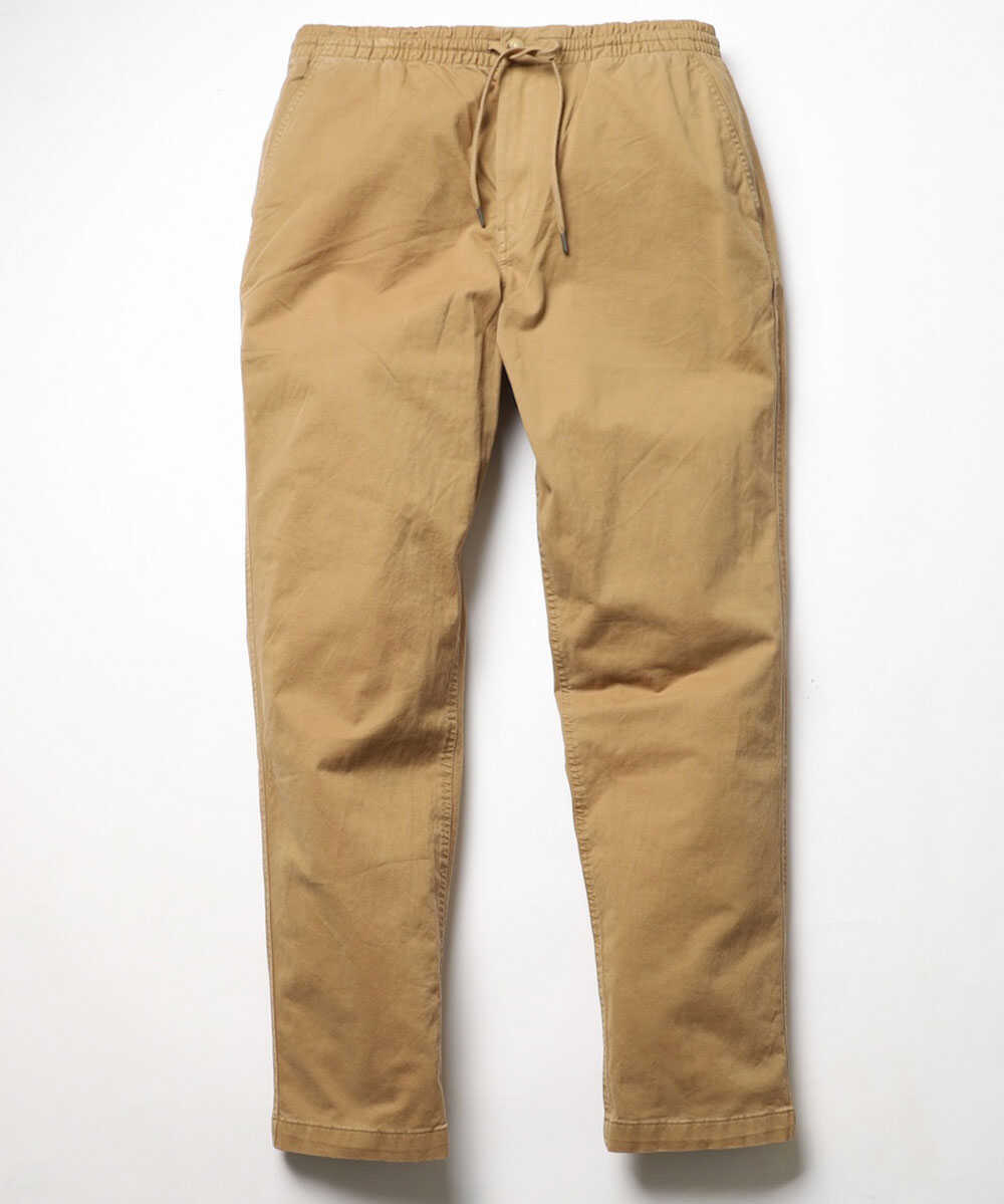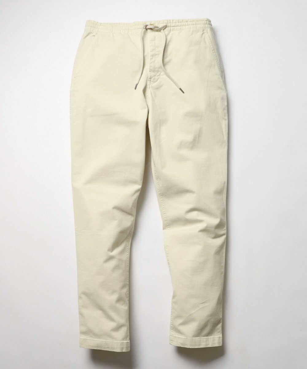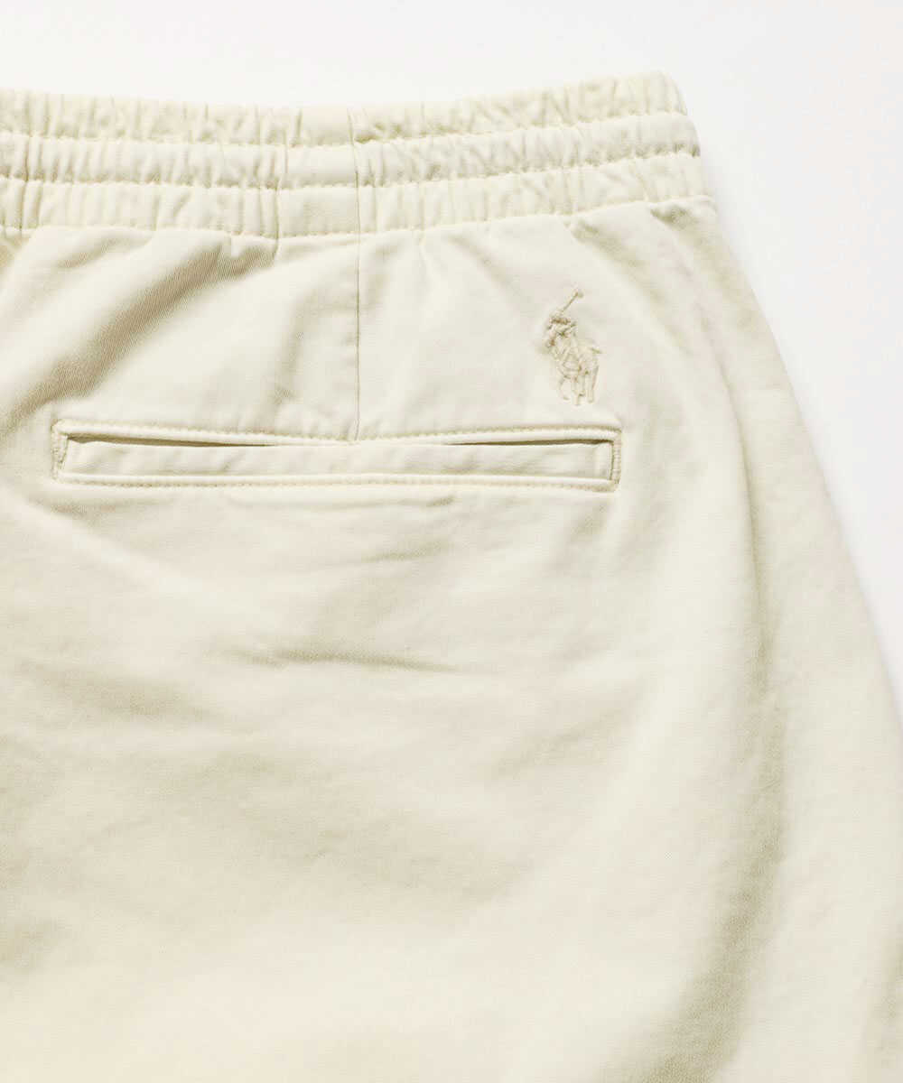 ウエストにドローコードを備えたイージー仕様でありながら、裾に向かってすっきりと落ちるテイパードシルエットが美脚をお約束。また、タフでしなやかな生地感は、日常使いにも重宝するはずだ。イージーパンツでありながらフロントはしっかりジップ仕様なのもさすがの作り込み。お馴染みのポロ ポニー刺繍はバックポケット上に同色でさりげなく控えめに。これみよがしではないあしらいが大人の証しだ。