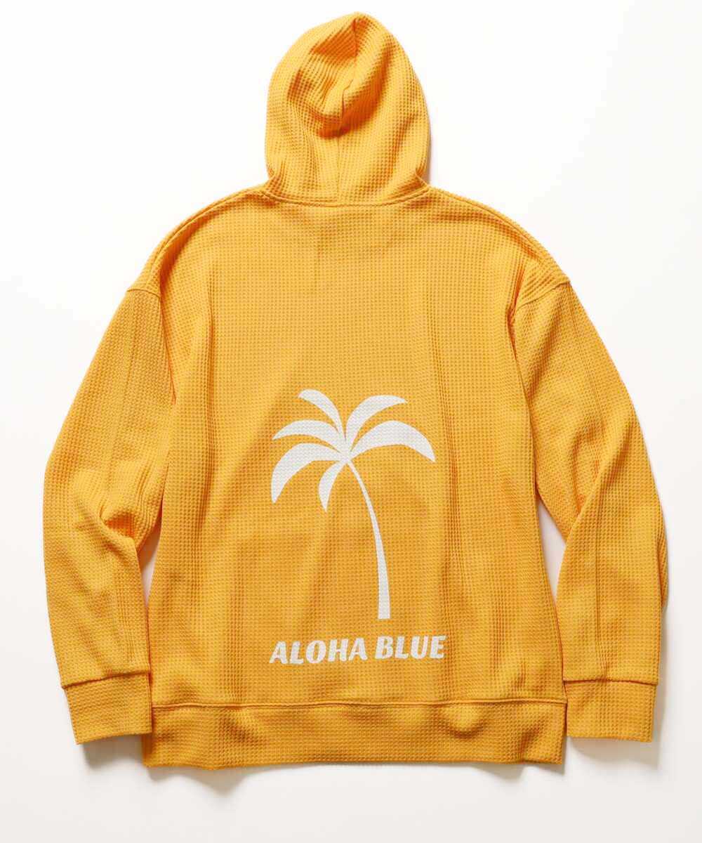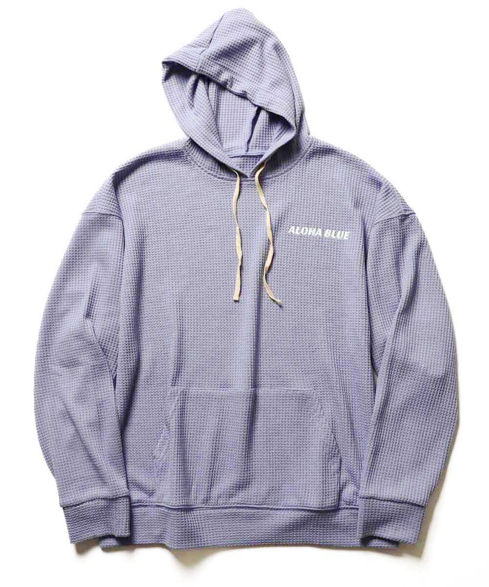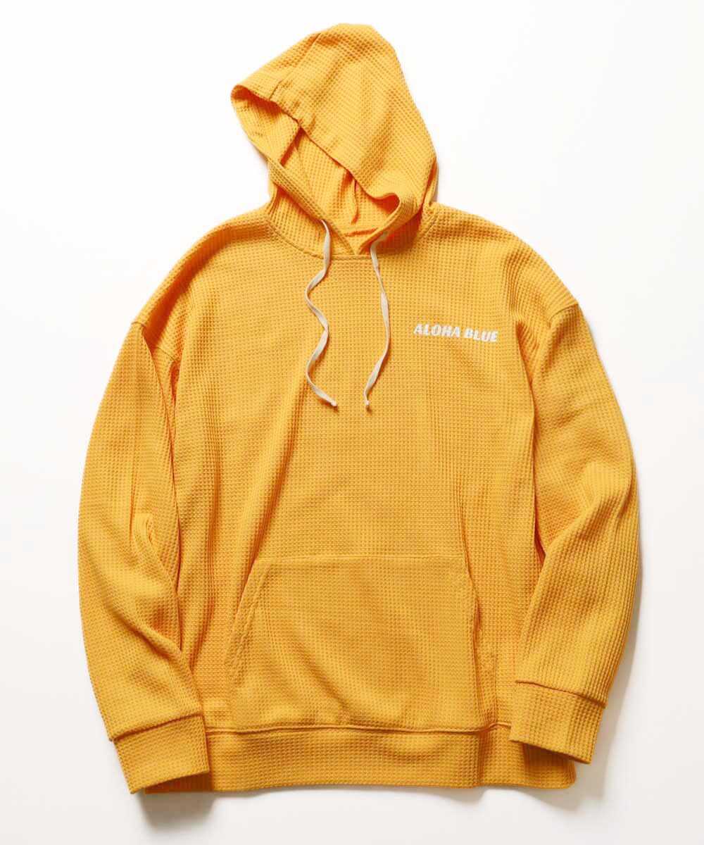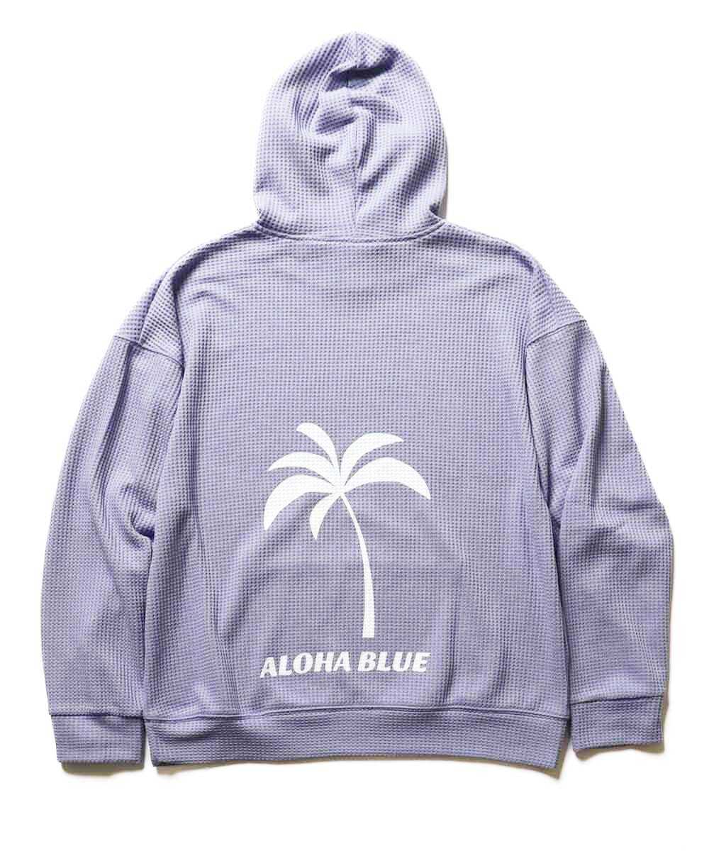海沿いのリラックスしたライフスタイルを提案する〈アロハブルー〉から届いたのは、春の気分を最高潮に盛り上げてくれるサーマルパーカ。カリフォルニアの太陽を思わせるオレンジや、マジックアワーのようなラベンダーといったポップなカラーリングが最大の魅力。左胸にはワンポイントのロゴ、背中には大胆にパームツリーのラバープリントが施されており、1枚着るだけで西海岸のリゾートムードを存分にアピールできる。プルオーバー型のカジュアルなデザインながら、軽く柔らかなサーマル生地のおかげで野暮ったさは皆無。春のお出かけをアクティブかつお洒落に彩ってくれる頼もしい1着だ。