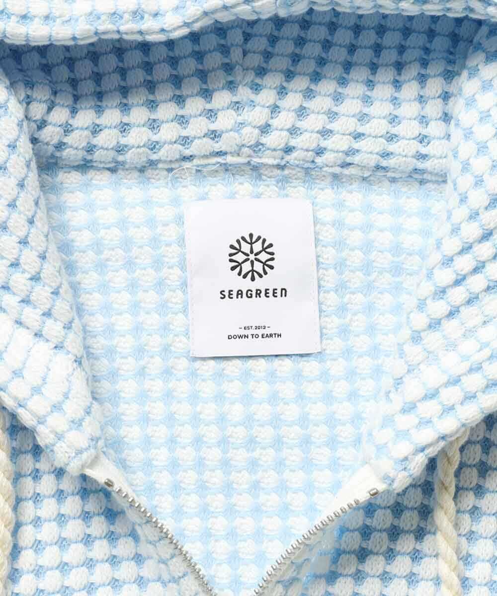 『Safari Lounge』でも絶大な人気を誇る〈シーグリーン〉の代名詞ともいえるワッフルパーカが、今季はより今どきなリラックスフィットにアップデートされて登場。従来のタイトなシルエットから身幅や肩まわりにゆとりを持たせることで、大人の余裕とこなれた抜け感を演出してくれる仕上がりに。フロントは上下どちらからでも開閉できるダブルファスナー仕様で、インナーとのレイヤードも自由自在。さらに脇下にはパスポートや鍵などを収納できるセキュリティポケットを備えており、日常のワンマイルウエアとしてはもちろん、旅行時の機内着やリゾート地での羽織りとしても優れた利便性を誇る。