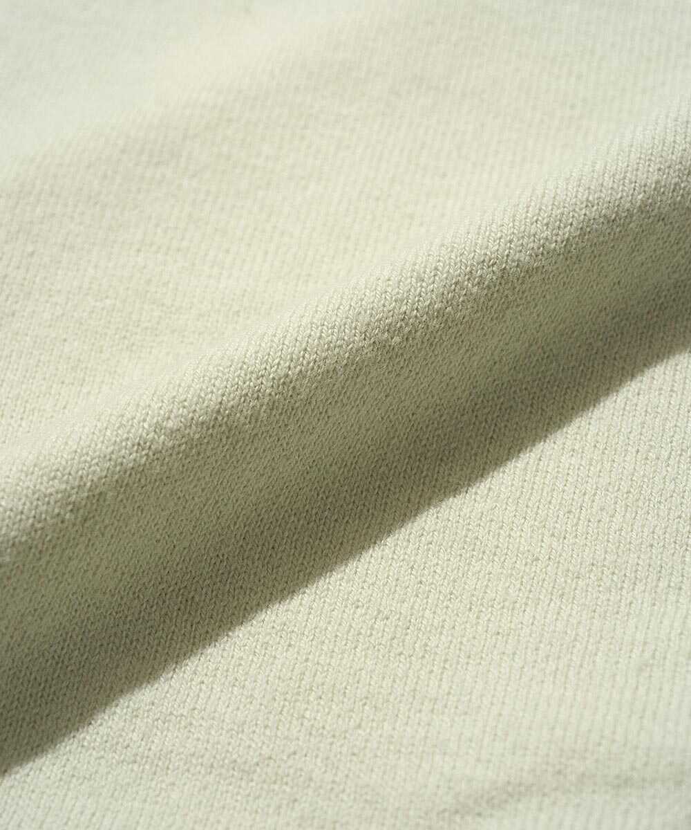 無駄を削ぎ落としたシンプルなクルーネックでありながら、確かな存在感を放つニットT。その秘密は、ボディ部分とリブ部分で編み地に変化を持たせたこだわりのデザインにある。フラットになりがちな夏の装いに、ニット編み特有の豊かな表情と奥深いニュアンスをプラスしてくれるのだ。もちろん肌触りはサラリと快適で、汗ばむような日でも肌にまとわりつくことなく、常に爽やかな着心地を約束してくれる。Tシャツ感覚でラフに着こなしても、決してだらしなく見えない上品な佇まいは、まさに大人のための日常着と言えるだろう。
