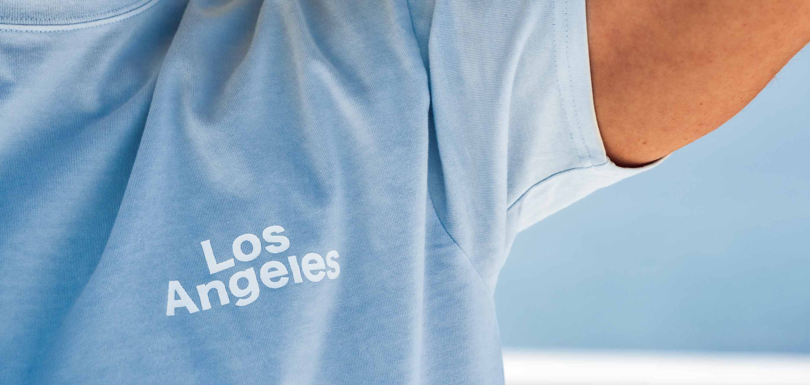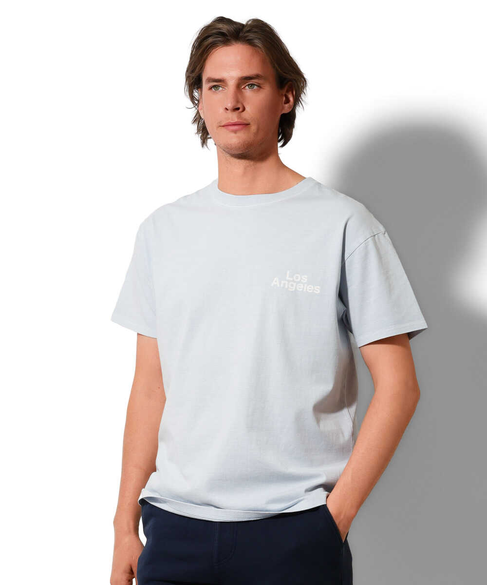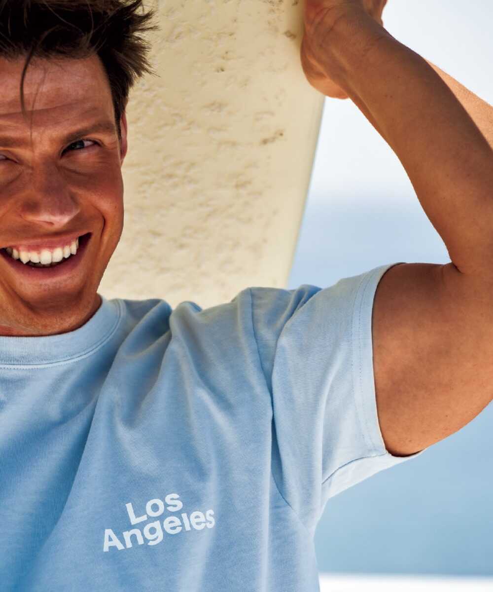 淡いライトブルーのボディに爽快なホワイトの"Los Angeles"プリントが映える軽やかな1枚。これで週末の波乗りへ向かえば、気分は一気に西海岸!