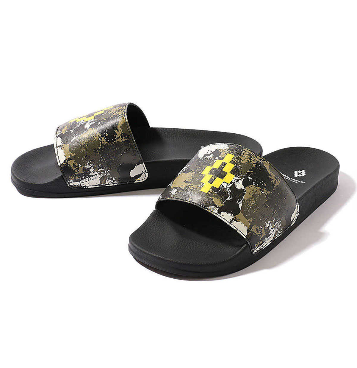 アートのようなタッチで迷彩柄を表現した中央にブランドロゴをのせたシャワーサンダル。ストリートな雰囲気を感じさせつつも、あくまで上品な見た目に仕上げている。