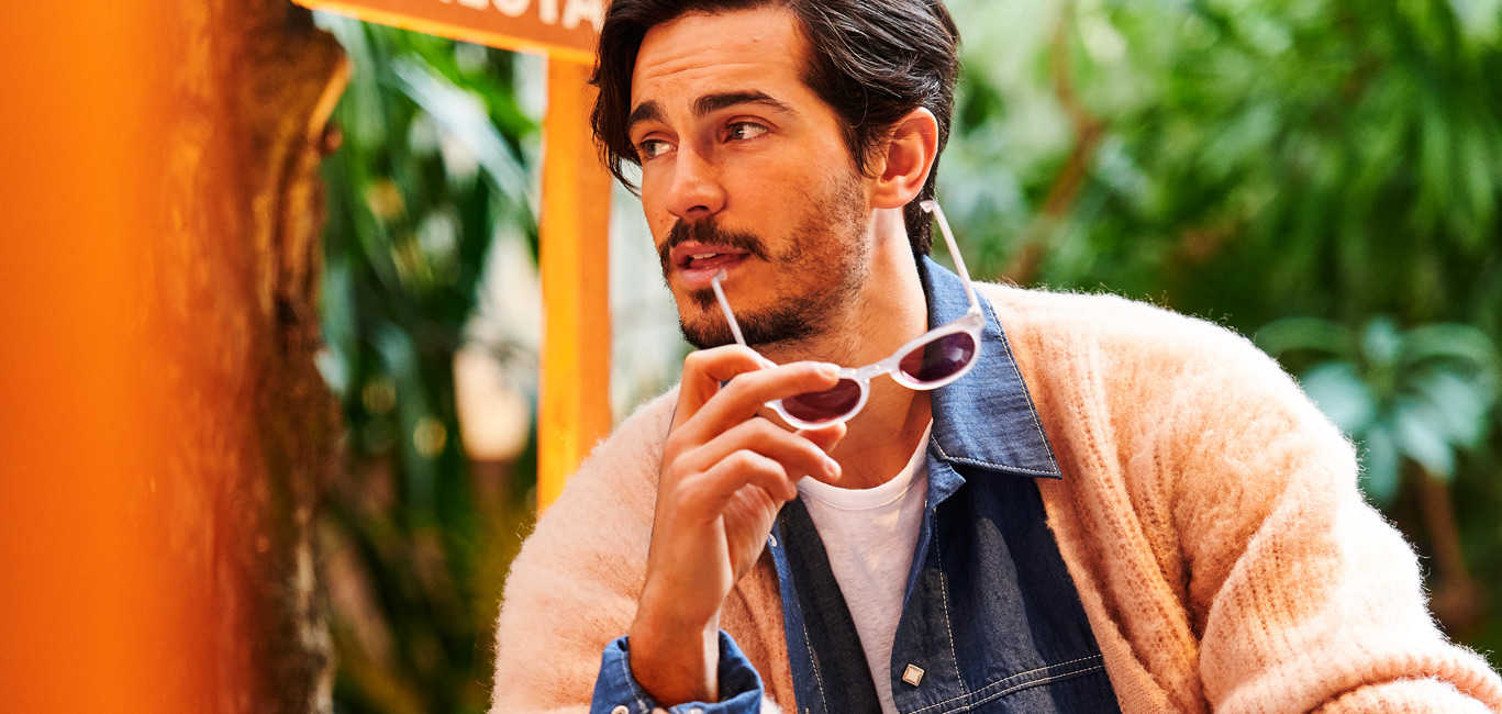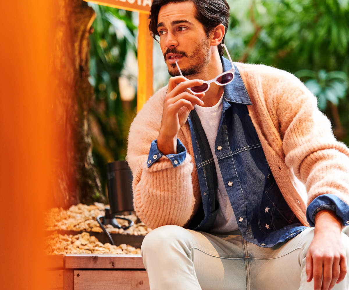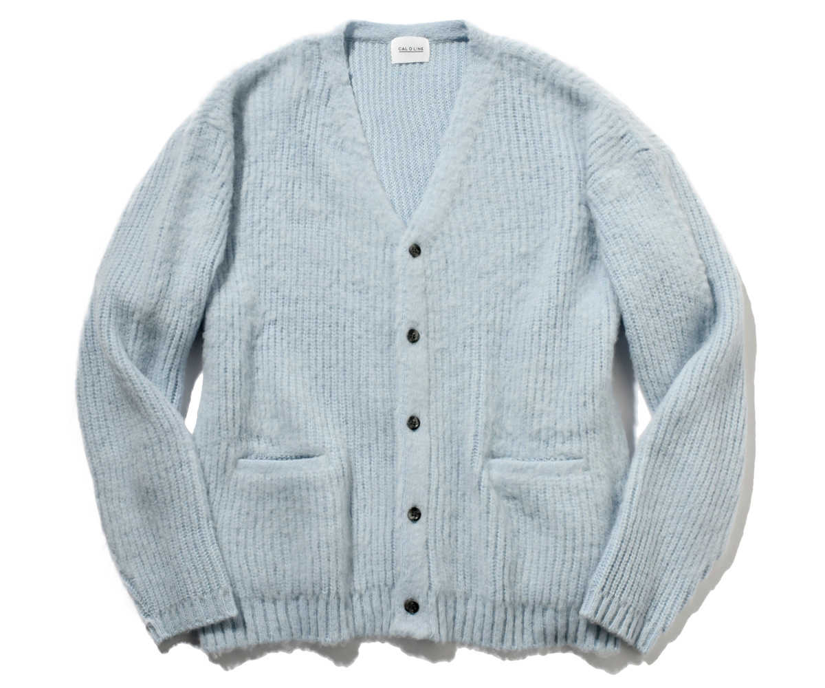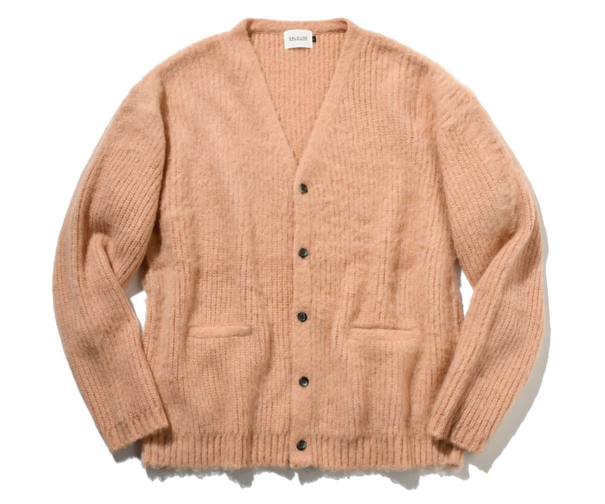 ふんわりとしたモヘアカーディガン。古着のような色褪せたブルーとピンクの2種類を『Safari Lounge』用に別注した。ともすればフェミニンになりがちな色合いを巧みにメンズ服に落としこむことで、ヴィンテージ感たっぷりに。少しゆとりのあるシルエットは、さらっと羽織るだけで大人の落ち着きを漂わせる。