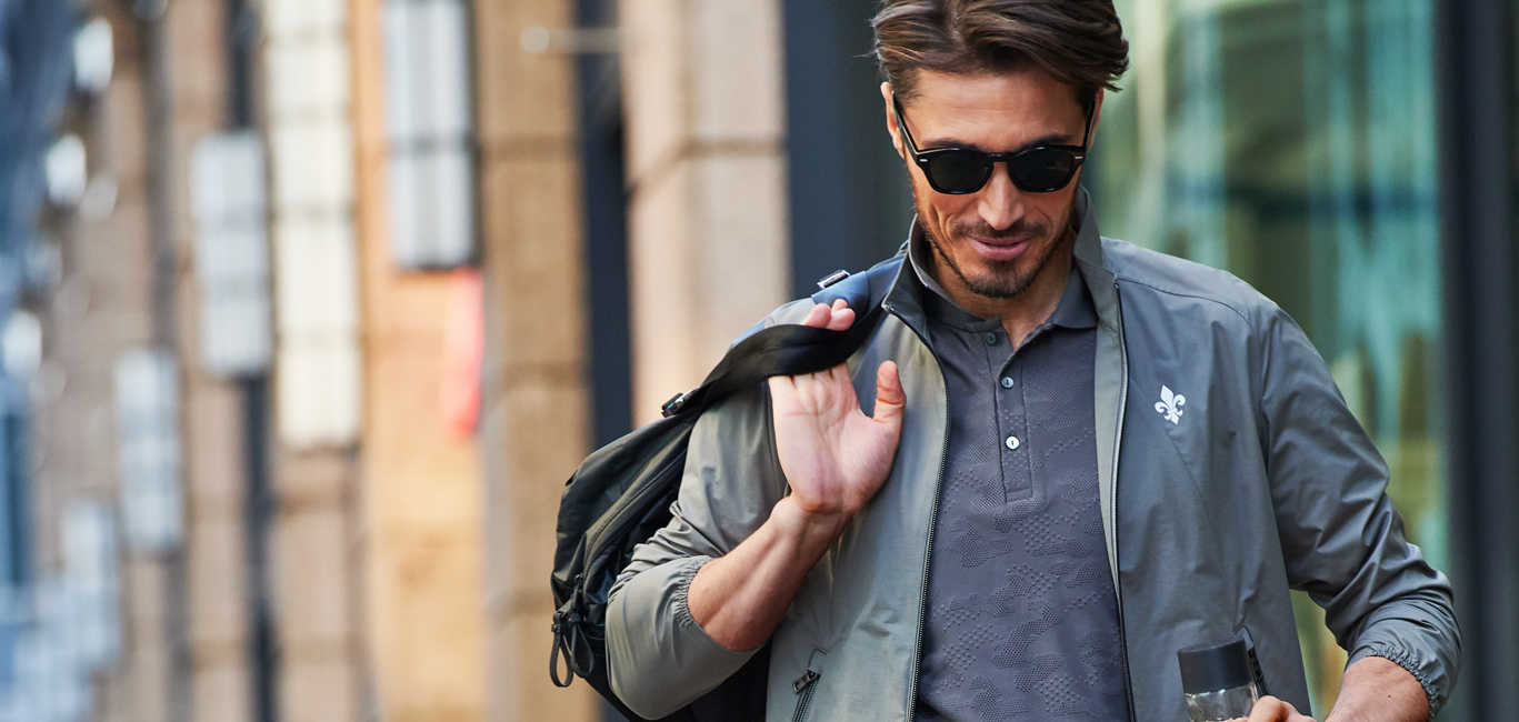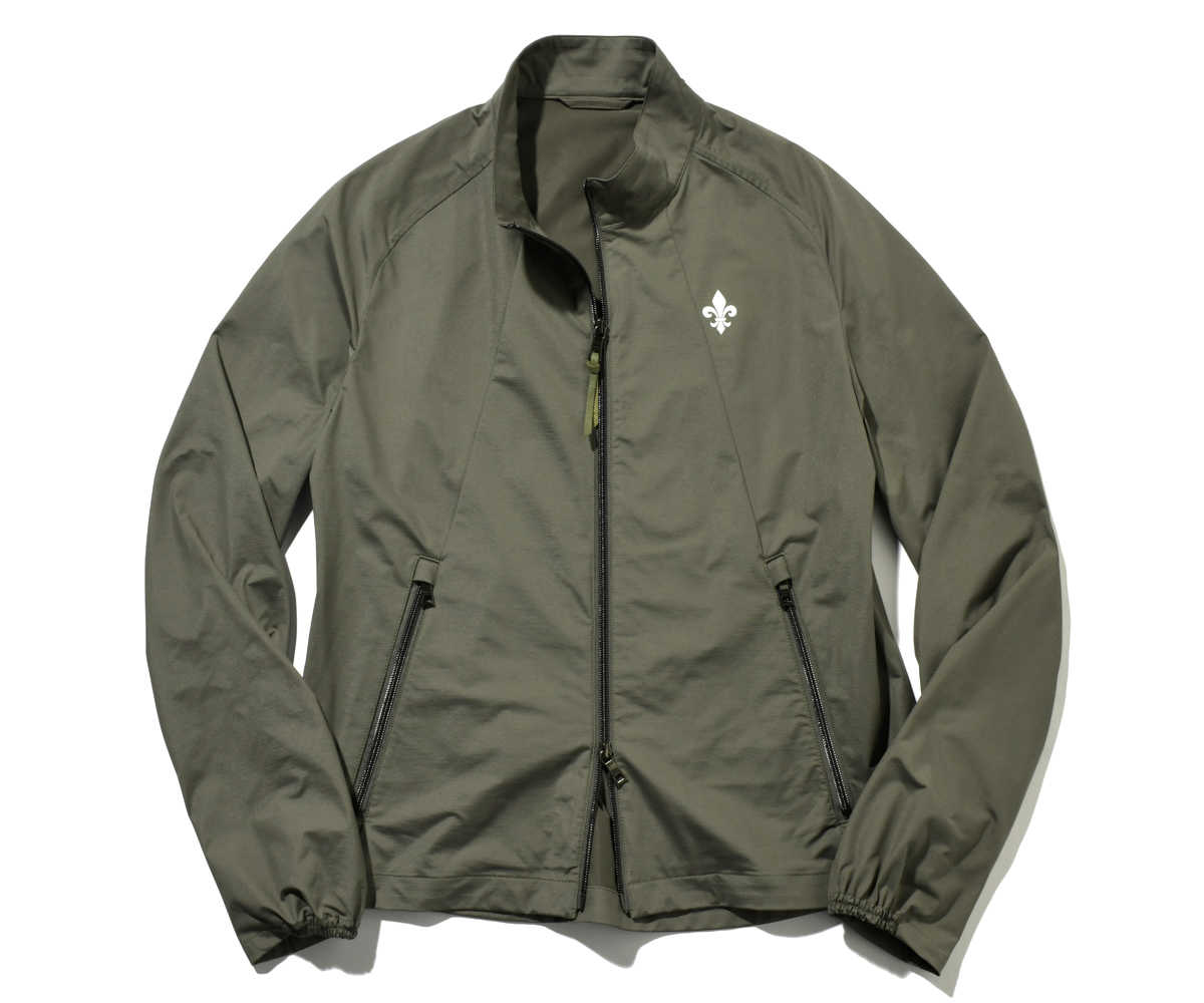 スポーティなスタンドカラーブルゾンも、マットな生地感ならモダンな印象。薄く作られたジャージ素材を用いているので、シワになることなくコンパクトに持ち運べるのも嬉しい。腕の可動域を広げるべくラグランスリーブを採用するなどの機能も万全。街でも取り入れやすい大人っぽいカーキは『Safari Lounge』の別注カラーだ。