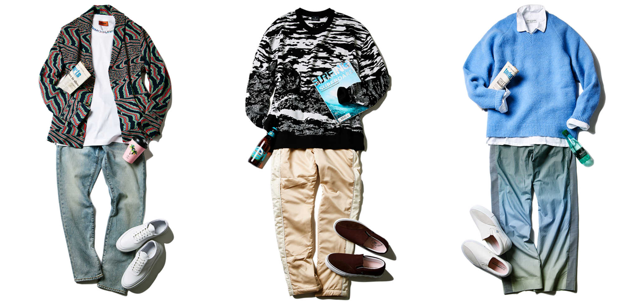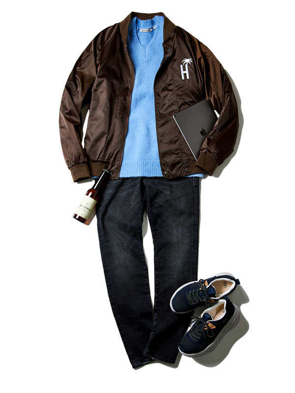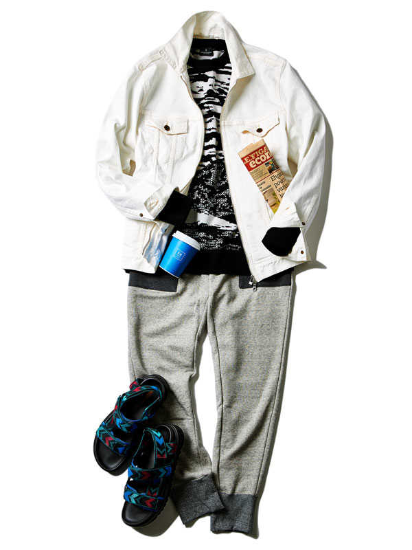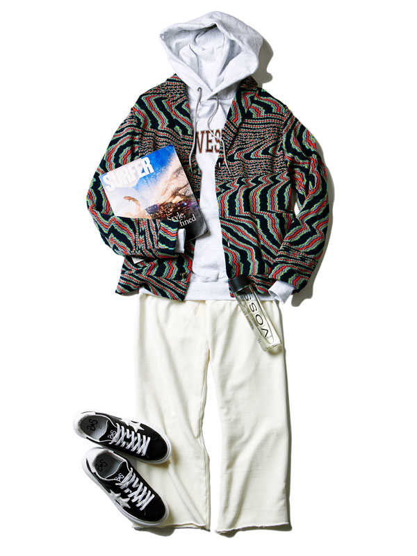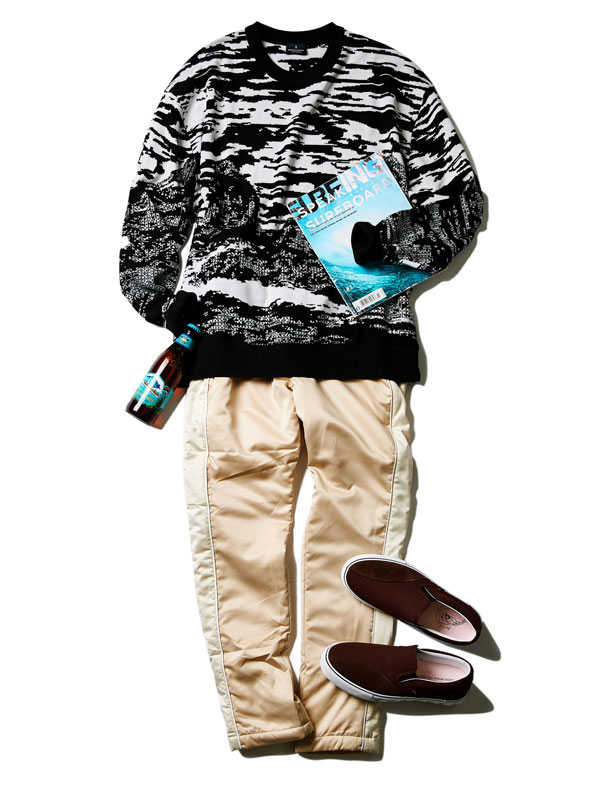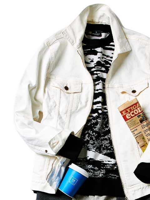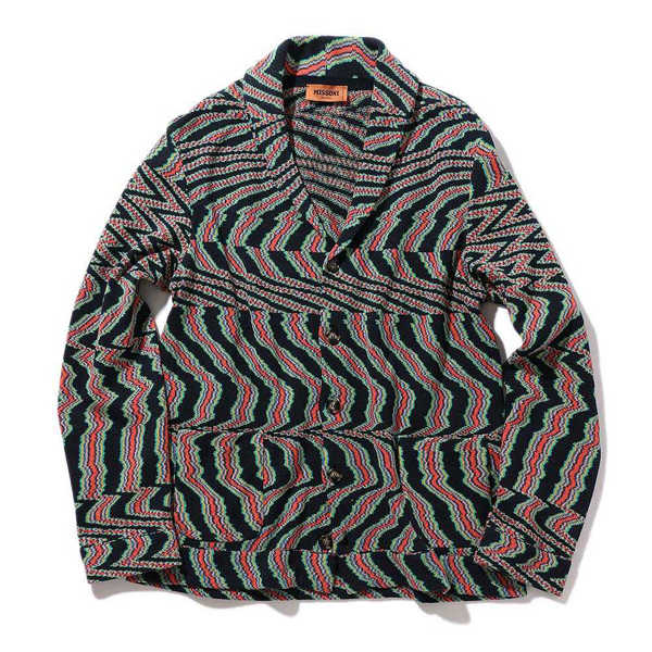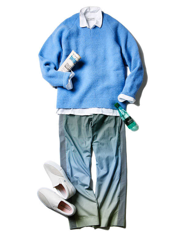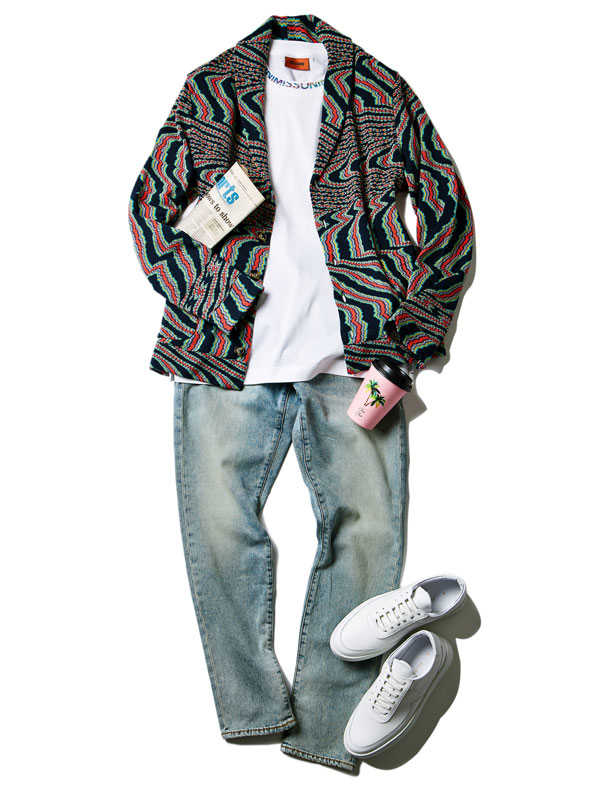 存在感ある1着は歴史あるニットブランド〈ミッソーニ〉のもの。このブランドでしか表現できないとまで言われる独特の編み柄は人目を引くこと請け合い。大人の余裕たっぷりの面持ちは着こなしのクラス感を確実にアップグレードしてくれるはずだ。