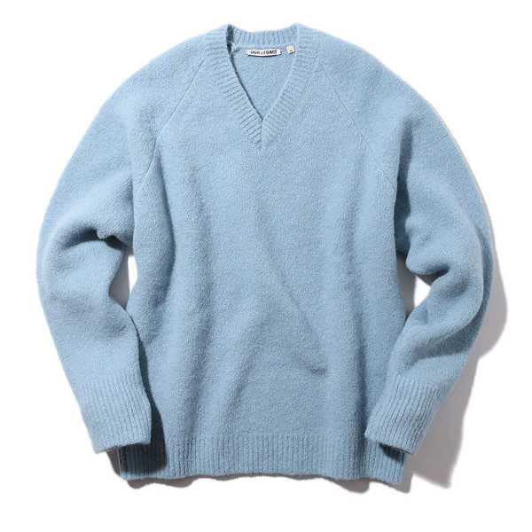 ブランドのルーツである北欧をイメージさせる美しいブルーが特徴のニット。首元を絶妙な深さのVネックにすることで、自然と抜け感が出るように仕上げているのはさすがといったところ。贅沢にベビーアルパカを使用したソフトな肌触りも魅力だ。