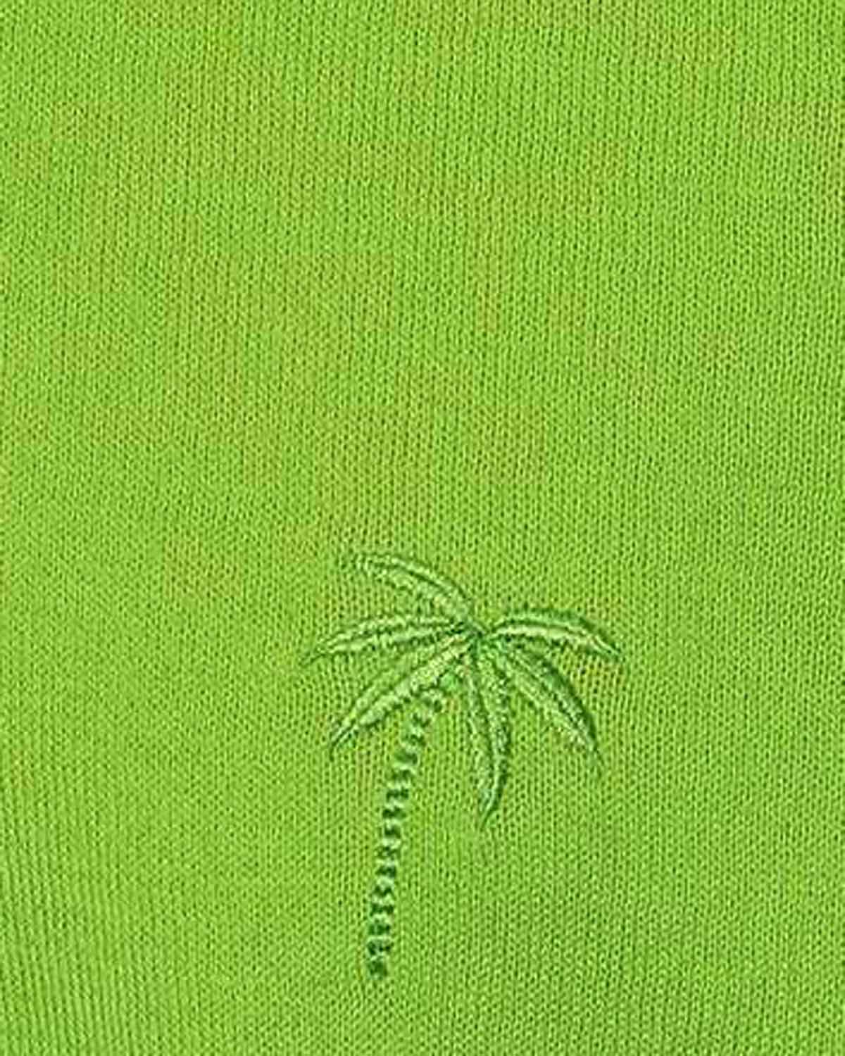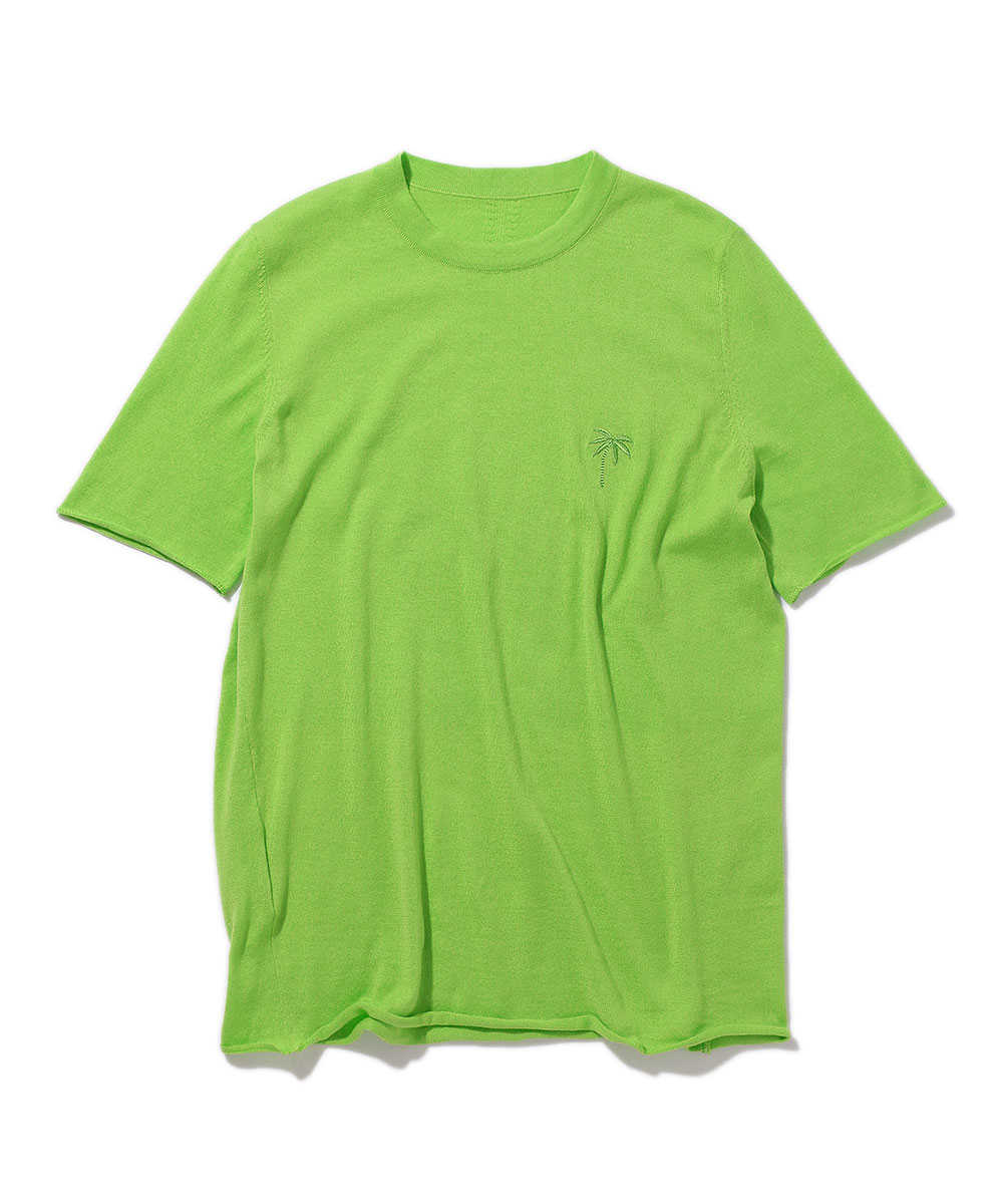 同色で施したパームツリーの刺繍や裾がカットオフになったラフな仕様。高級感ある素材のニットなのでカジュアルになりすぎず、絶妙な塩梅に仕上がっている!
