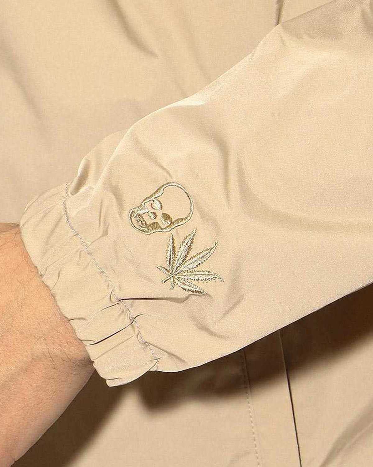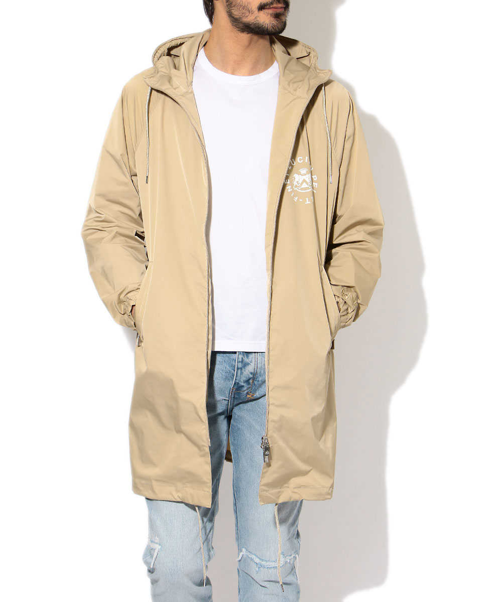 フロントのロゴプリントに加えて、袖にはスカルとヘンプの刺繍が。また、バックスタイルも映えるようにブランドネームをプリント。ダブルジップ仕様なのでロング丈でもシルエットを調整しやすく、様々なコーディネートに合わせやすい。
