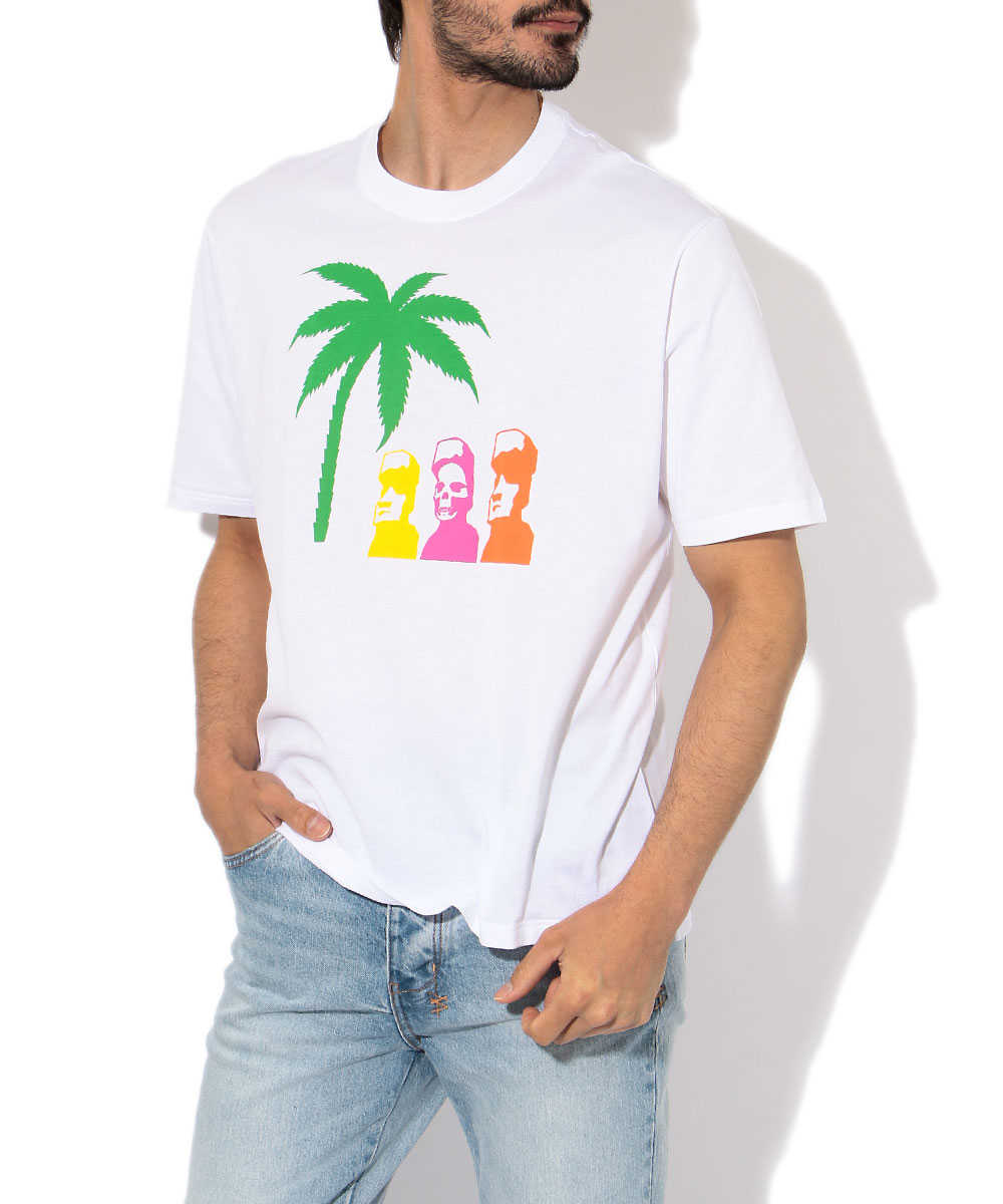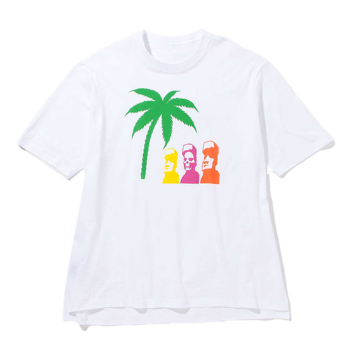パームツリーとモアイ像が並んだプリントをあざやかなカラーリングでポップな印象に。中央のモアイ像はブランドのアイコンであるスカルになっていて唯一無二の存在感。この遊び心こそ、〈ルシアン ペラフィネ〉が得意とするテクニックだ。もちろん生地も最高級。