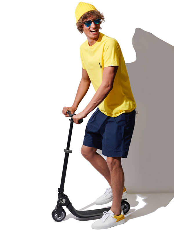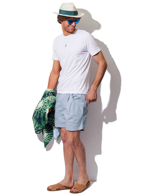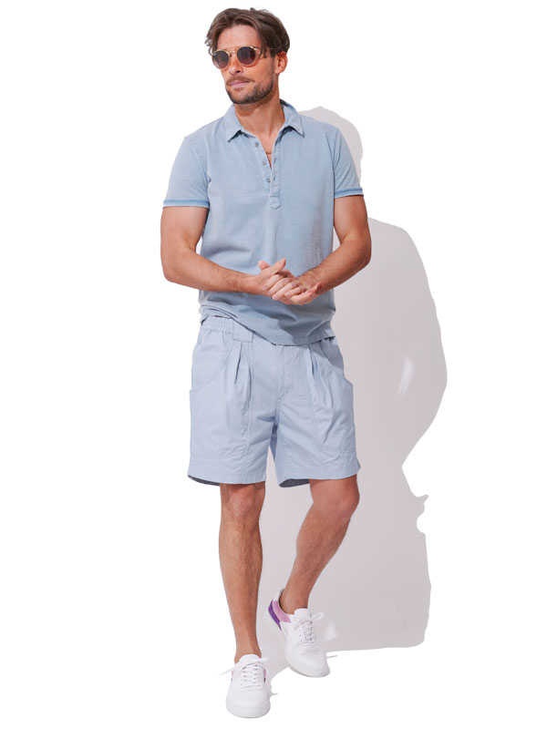 夏の定番ショーツのなかでも、最も着まわしやすいのがブルーカラー。白Tやビビッドカラー、ポロシャツなど、合わせるトップの魅力を最大限に引き出してくれるアイテムだ。濃色、淡色、いずれも揃えれば、夏コーデで迷うこともなくなるはずだ。ここで紹介するショーツはタック入りなので、品のよさも表現できる。