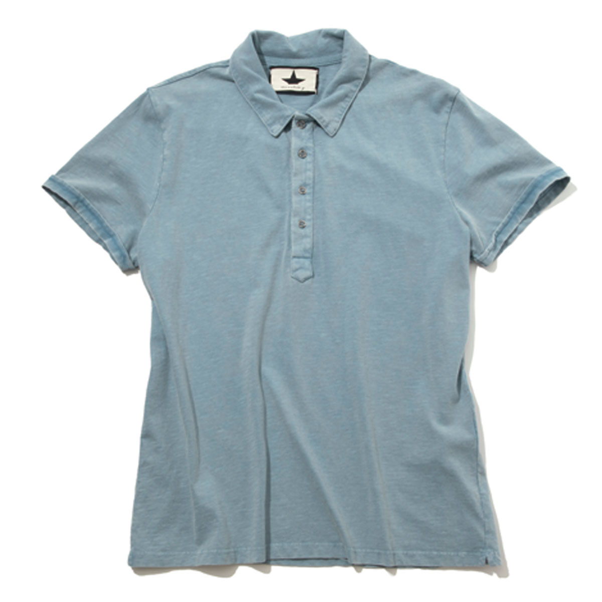 コットン生地を使った襟付きのポロシャツ。洗いをかけることで独特のくったりとした風合いと淡いくすみがかったトーンを持たせ、こなれた雰囲気たっぷりに仕上げた。やや深めに切れこみをいれた4つボタンの胸元は、閉めればきちんと感ある着こなしに、ガバッと開ければ鍛えたカラダをアピールできるセクシーなスタイルを演出する。
