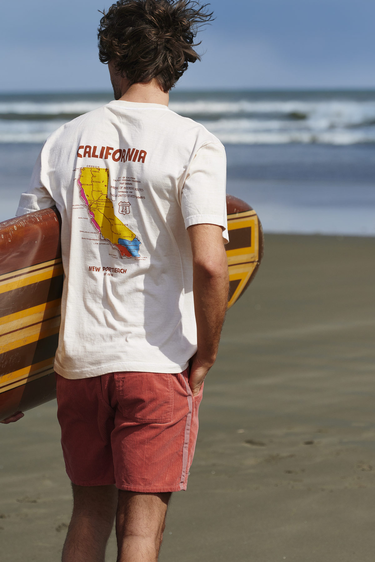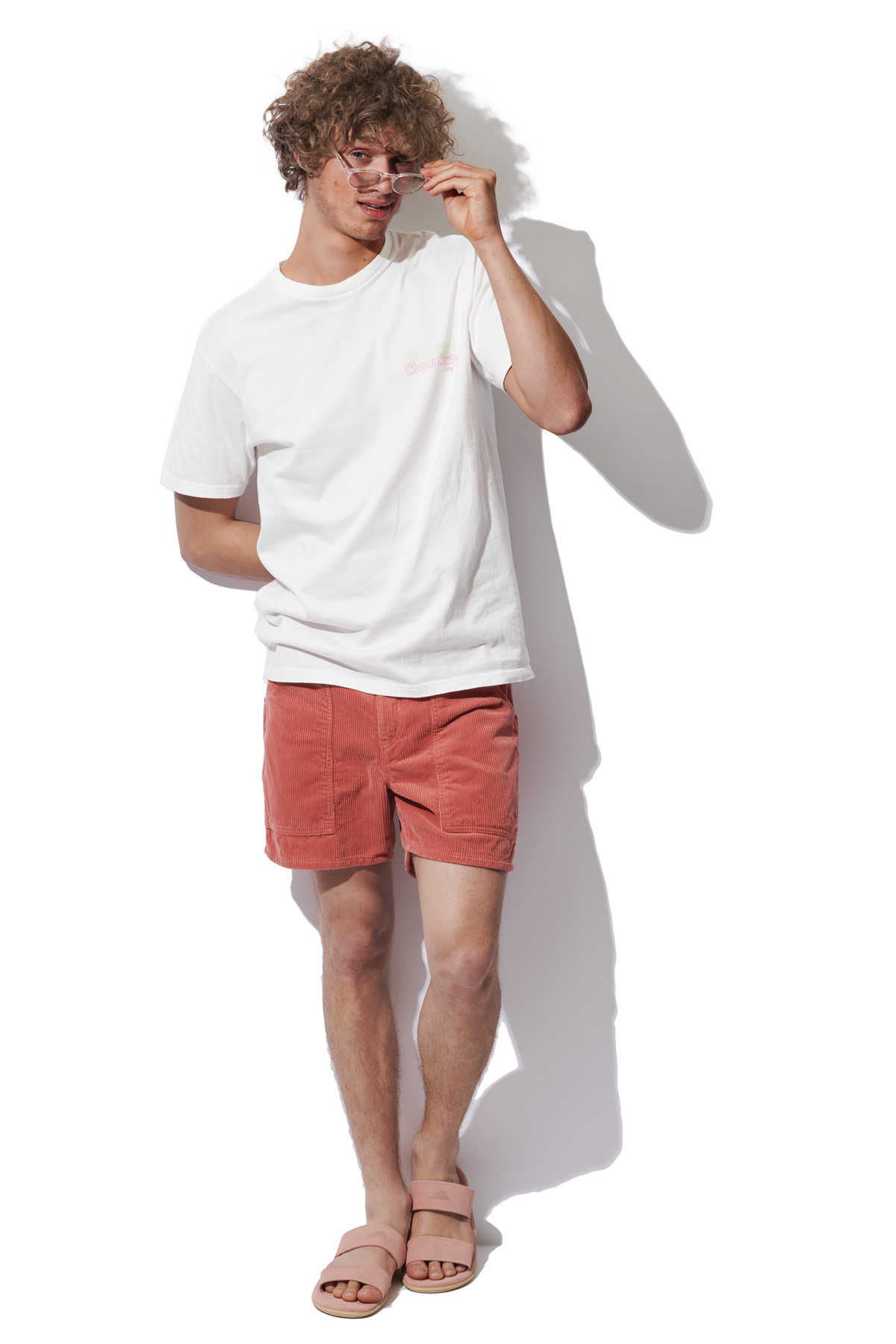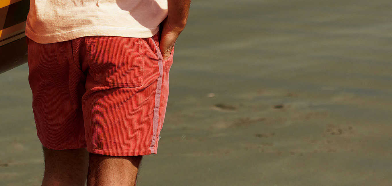 どこか懐かしく、そして大人らしい落ち着きも表現できるレトロサーフな着こなし。生地の畝によって独特な表情を放つコーデュロイショーツは、そんなコーディネートを作るための代名詞的アイテムだ。相性のいいシンプルなTシャツを合わせ、その味わい深い表情を楽しみたい。