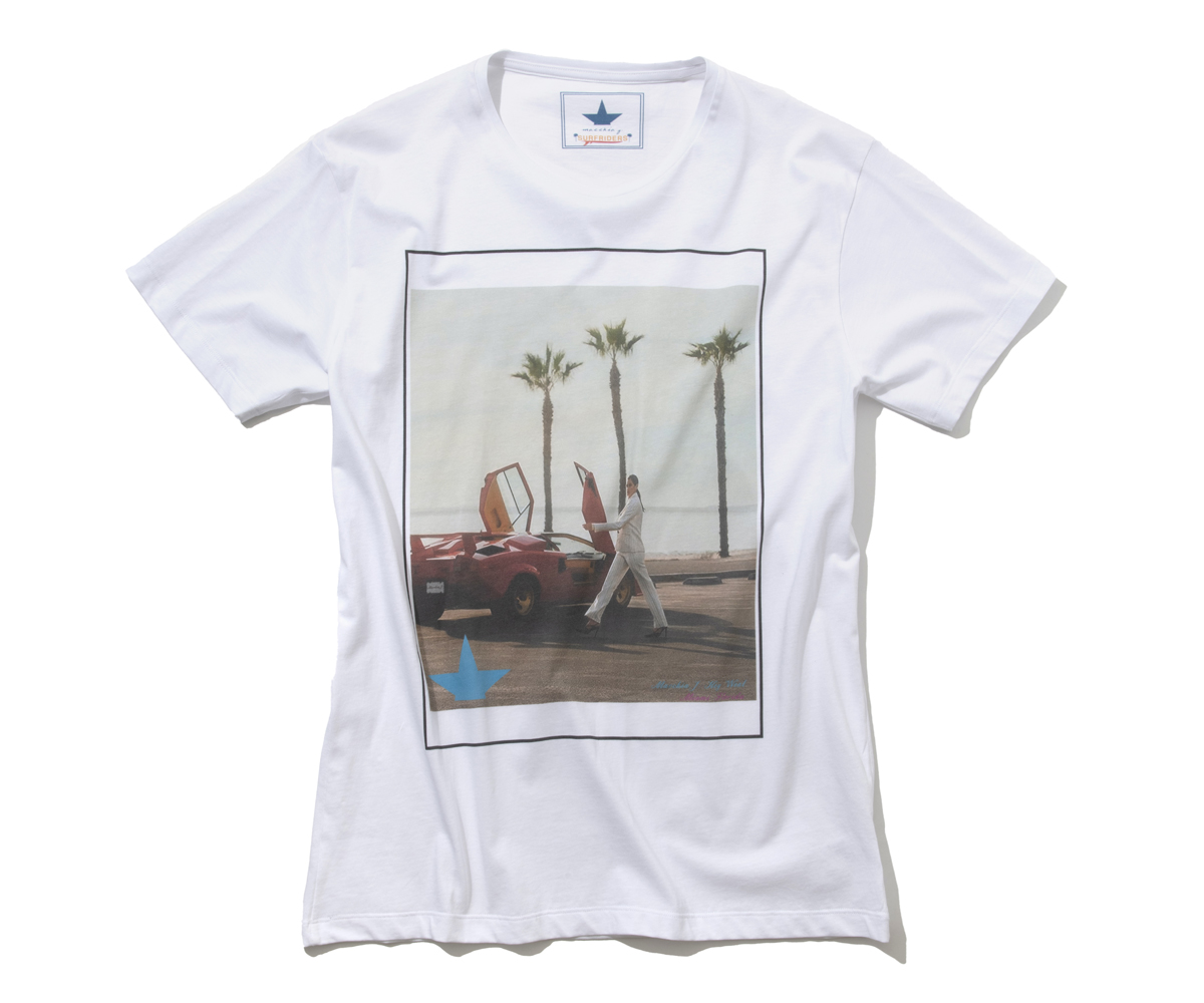 なめらかな肌触りの上質なコットンのTシャツに、西海岸ビーチを彷彿とさせる写真をプリント。ほどよく褪せた雰囲気から、レトロな印象も感じさせる。現在はイタリア・ボローニャを拠点とするが、LA・ウエストハリウッドが発祥のブランドだけに、自由で遊び心たっぷりなデザインに仕上がっている。1枚で着るだけでも様になる。