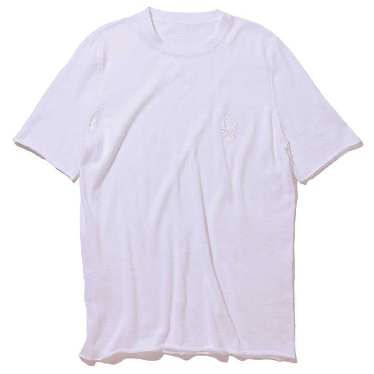 白Tは白Tでも、コチラは“白ニットT”。コットン生地とは違ったふわっとした上質な生地感を楽しむことができる。白糸で刺繍した胸元のスカルで遊び心をプラス。