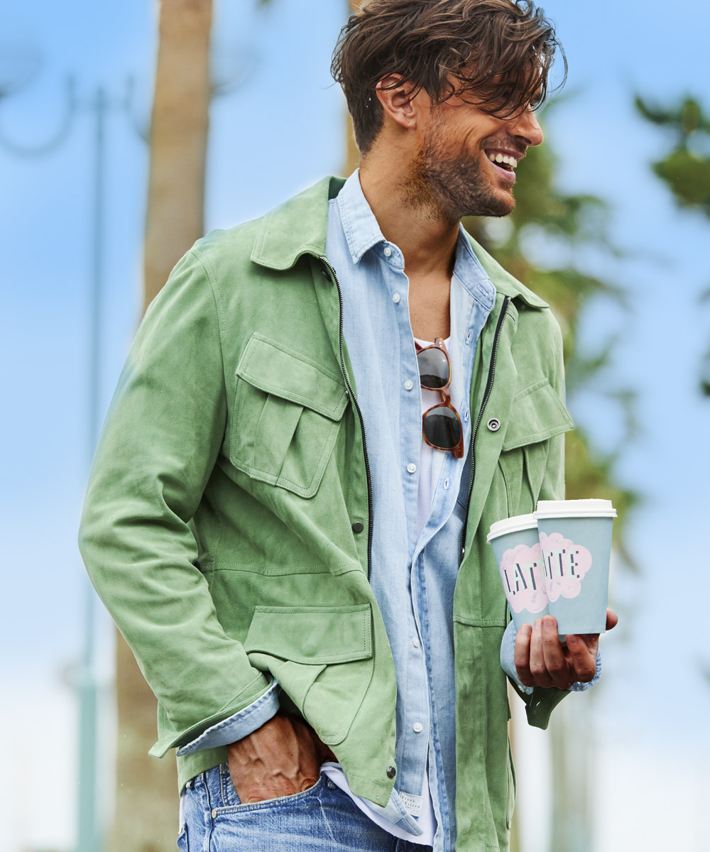 武骨なミリタリーグリーンのファティーグジャケットも、スウェード素材なればこんなに上品な見た目に! “男クサい”ではなく“男の品格”へと導いてくれる、しなやかなゴートスウェードが魅力の1着だ。男らしさに加えて落ち着きを感じさせてくれるミルキーなカラーリングは『Safari Lounge』別注の賜物。また、タイトすぎないスリムなフィッティングも絶妙。上品なパンツはもちろん、味感あるデニムとの相性もすこぶるよく振り幅の広さを実感できるはず。